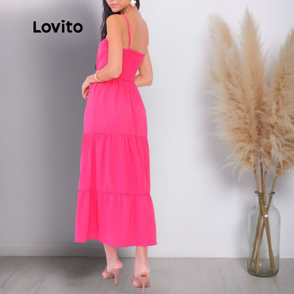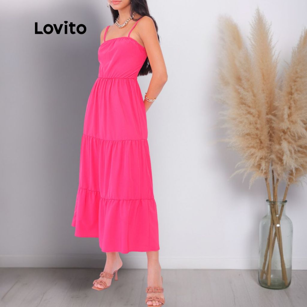 Lovito Vestido Longo Alcas Finas Com Marias Feminino DRB554BRL584