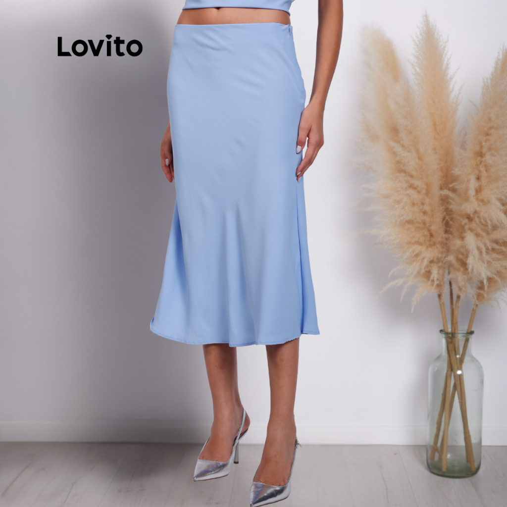 Lovito Saia Plano Midi Acetinada Moda Feminina BRSKB1052BRL1082