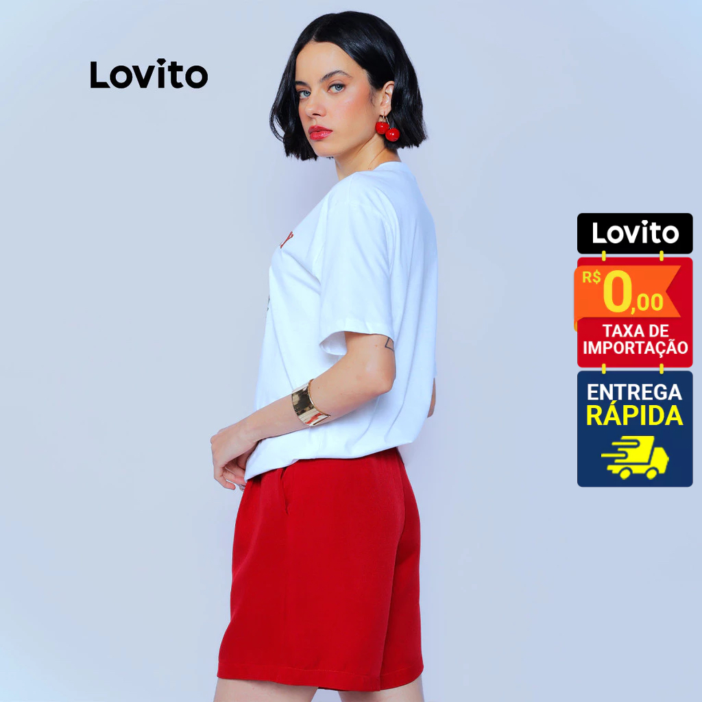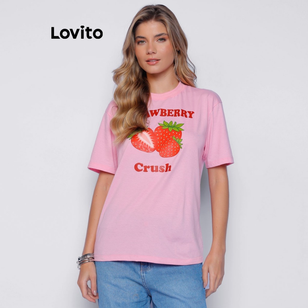 Lovito Camiseta Feminina Basica Casual Estampa de Morango TSB1401BRL1431