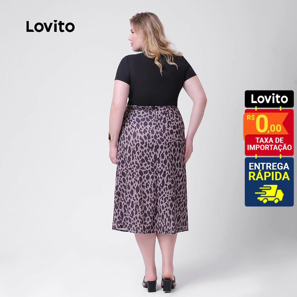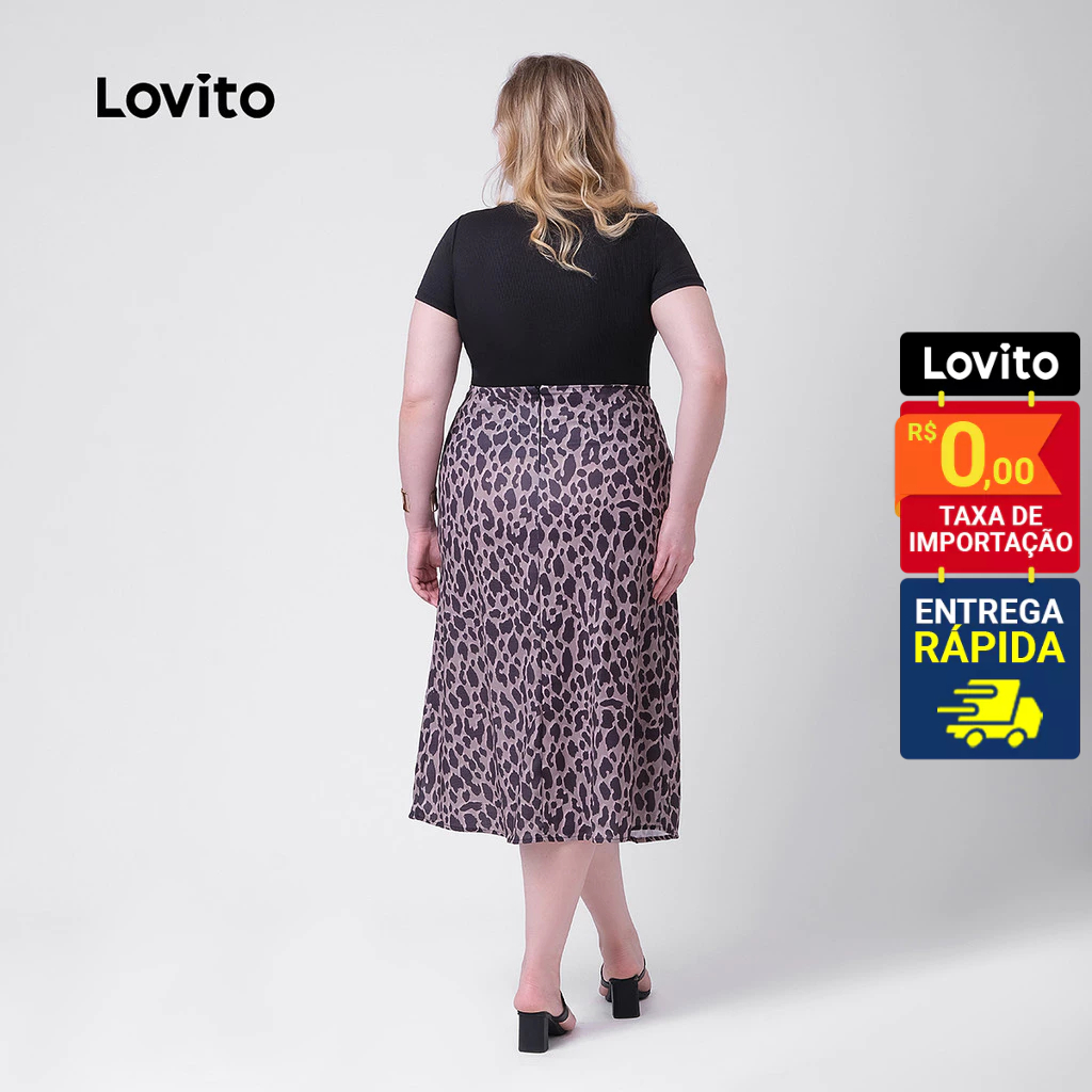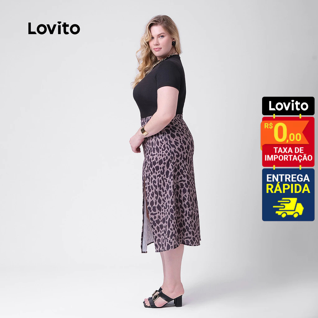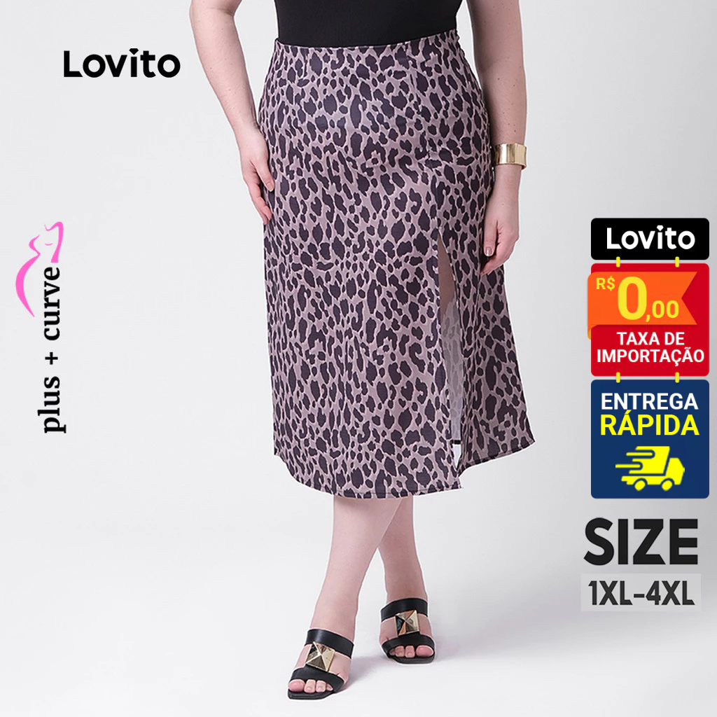 Lovito Saia Feminina Midi Estampa Animal Print Plus Size SKB129BRL158