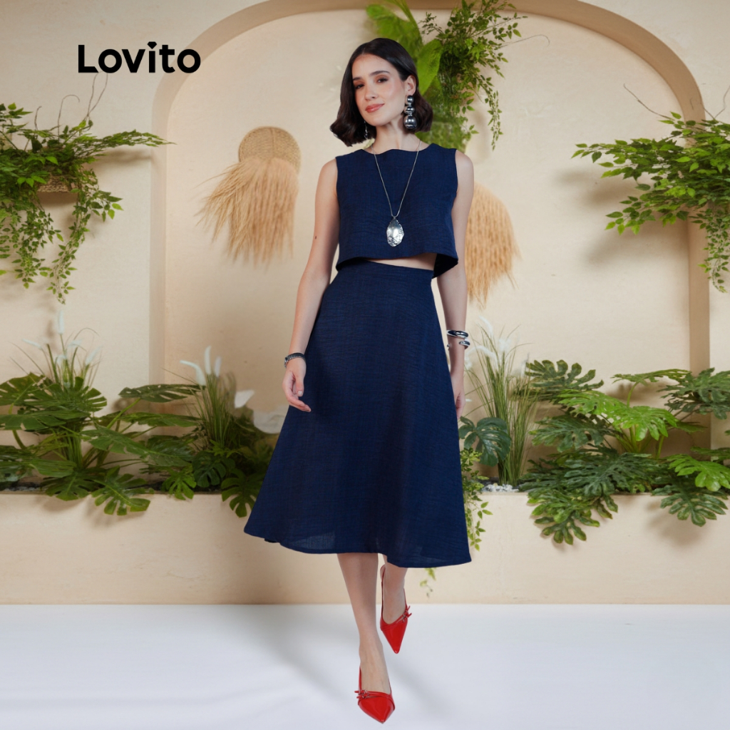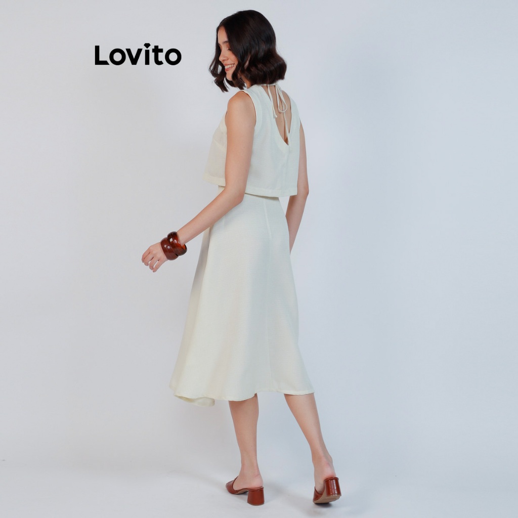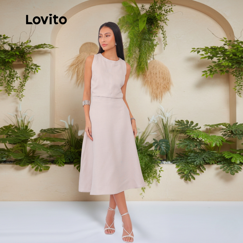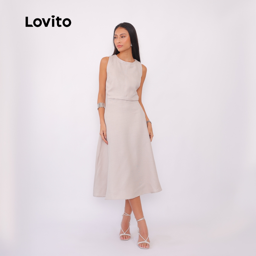 Lovito Conjunto Linho Moda Elegante Liso de Saia para Mulheres KSB679BRL709