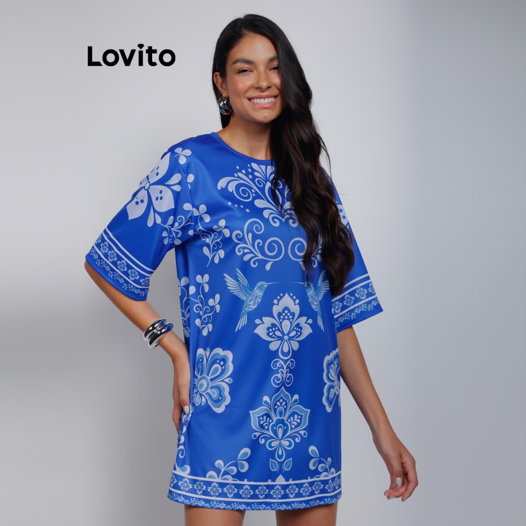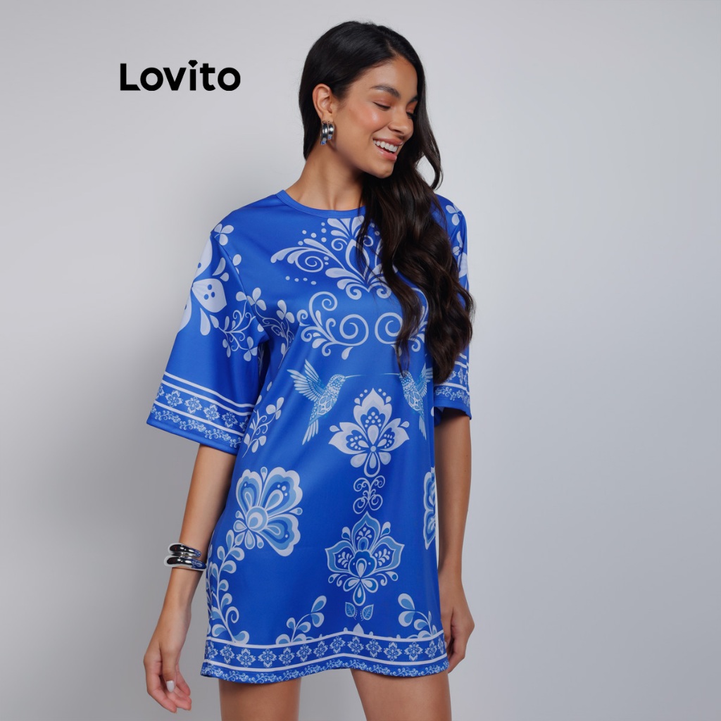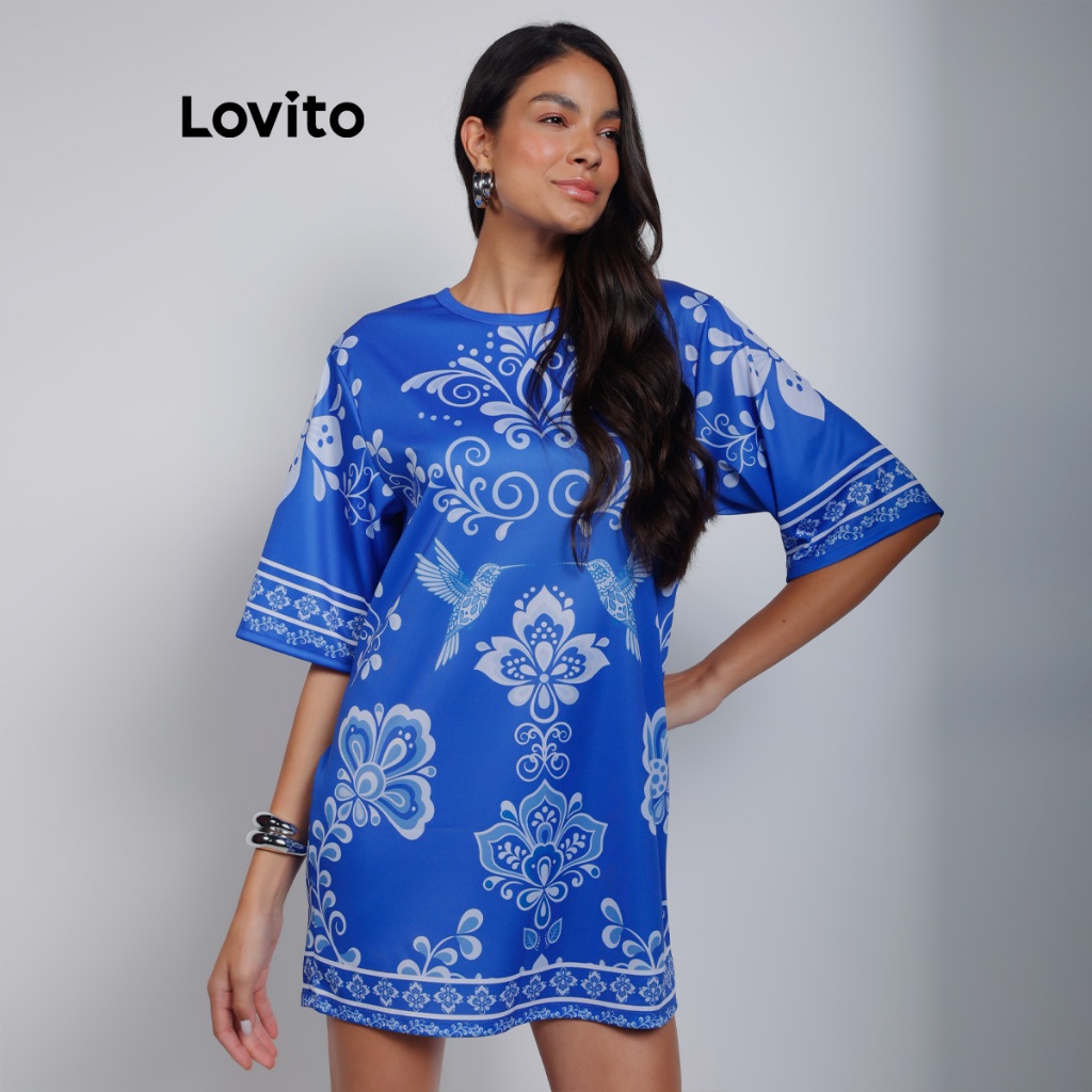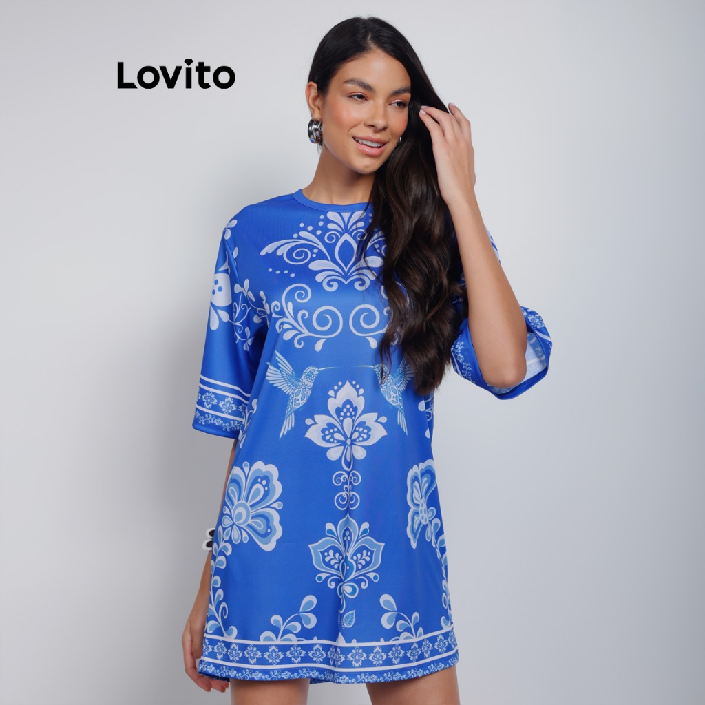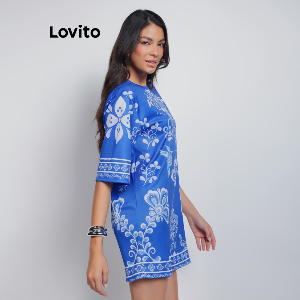 Lovito Bossa l Vestido Camiseta com Manga Alongada Estampa Arabescos DRB15741604