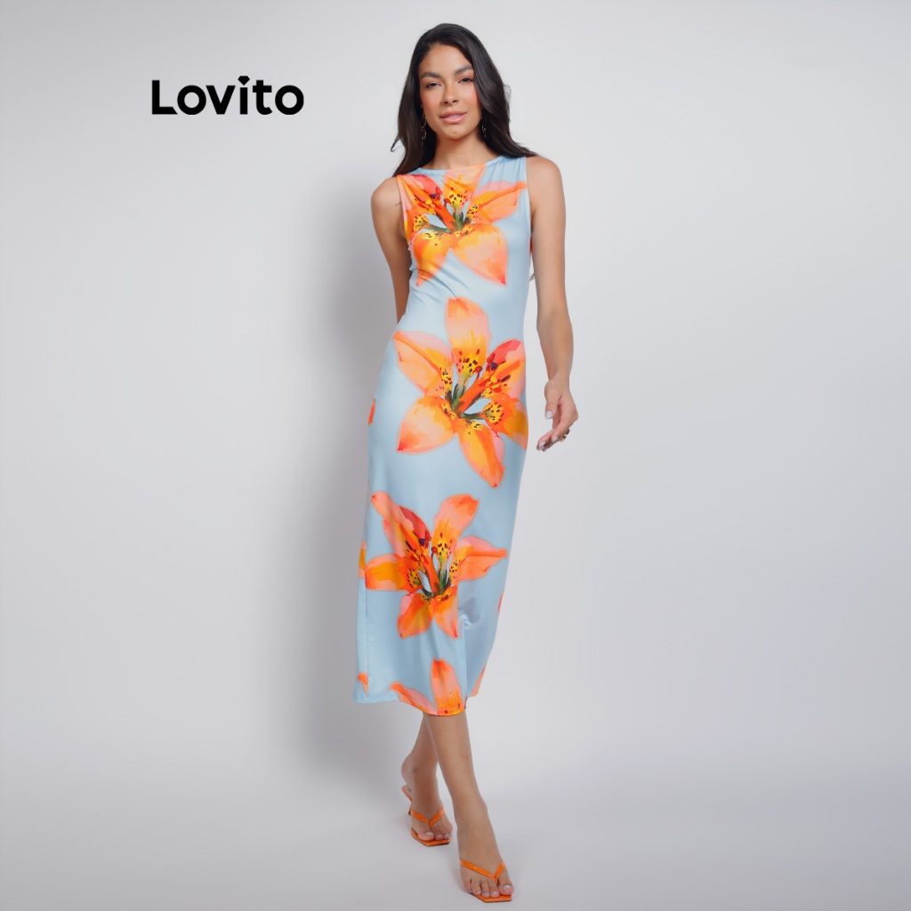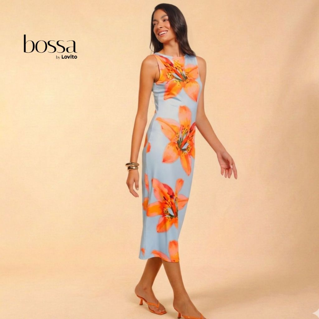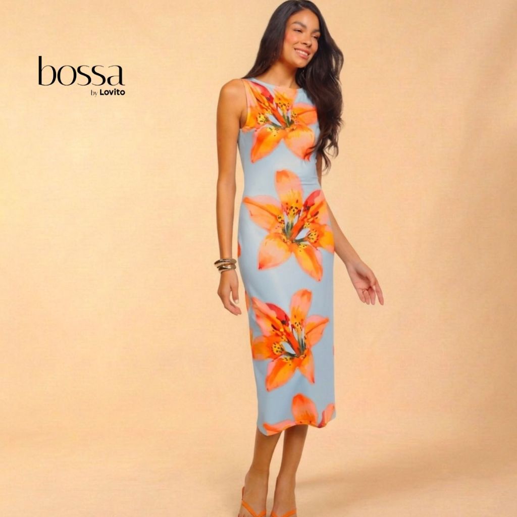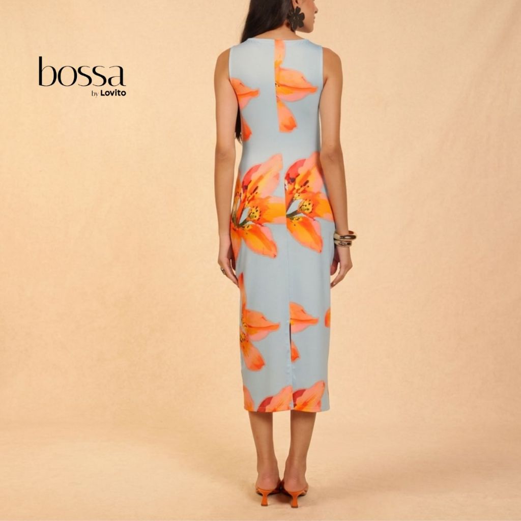 Lovito Bossa | Vestido Feminino Decote Nadador Estampado DRB15881618