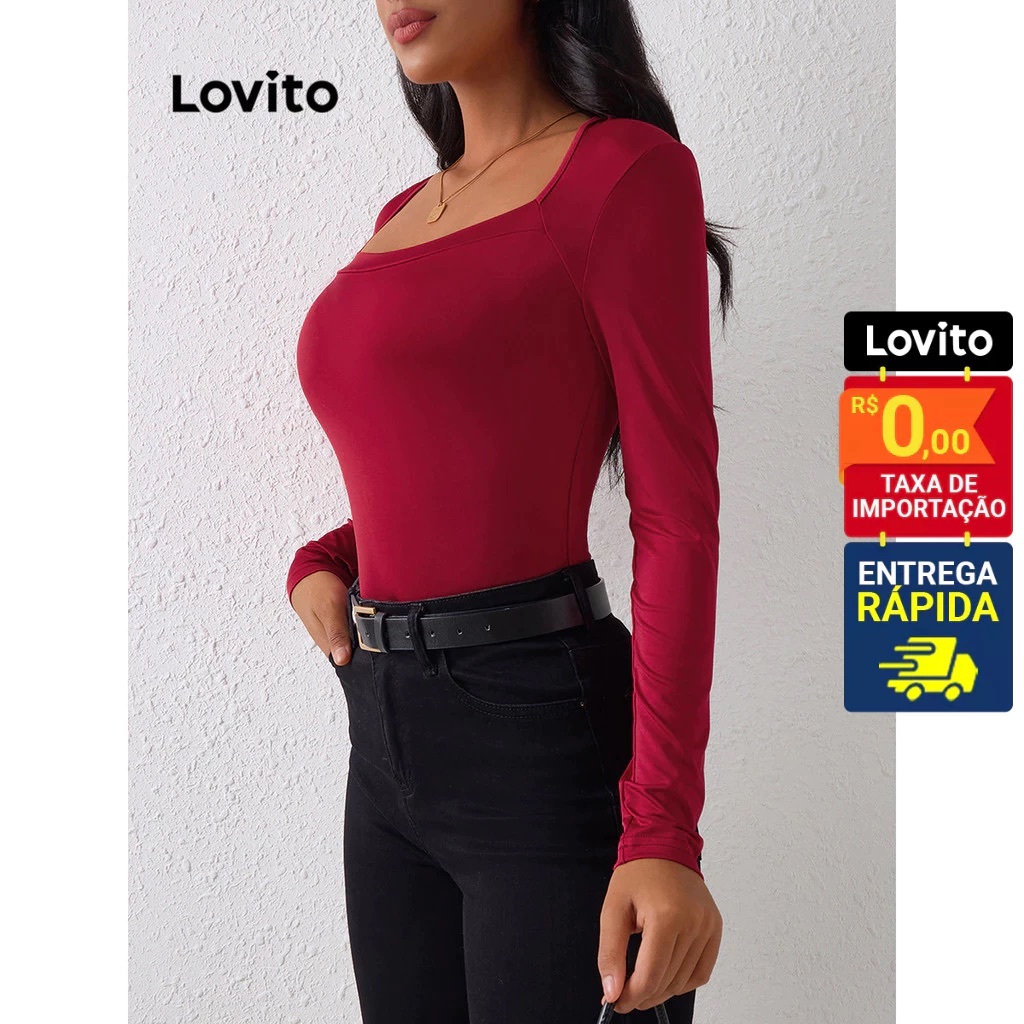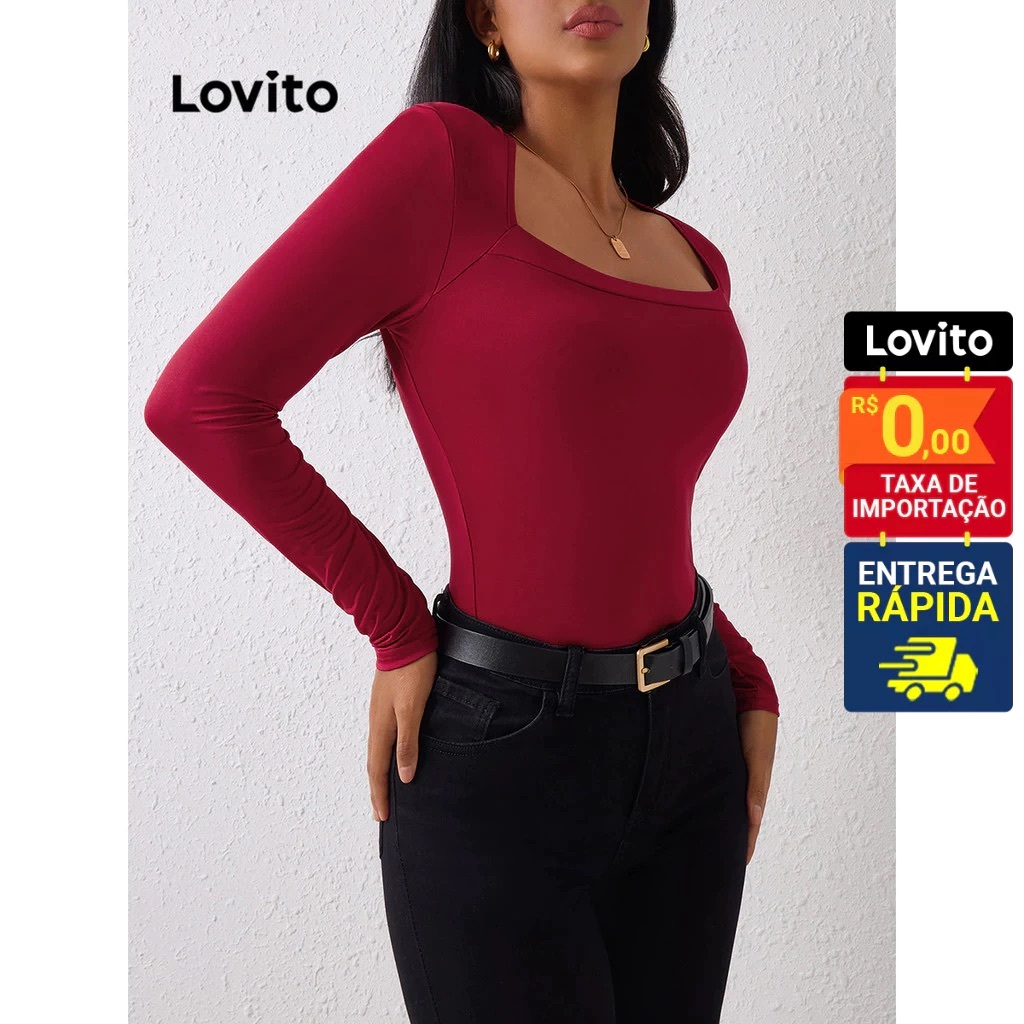 Blusa manga longa com decote quadrado