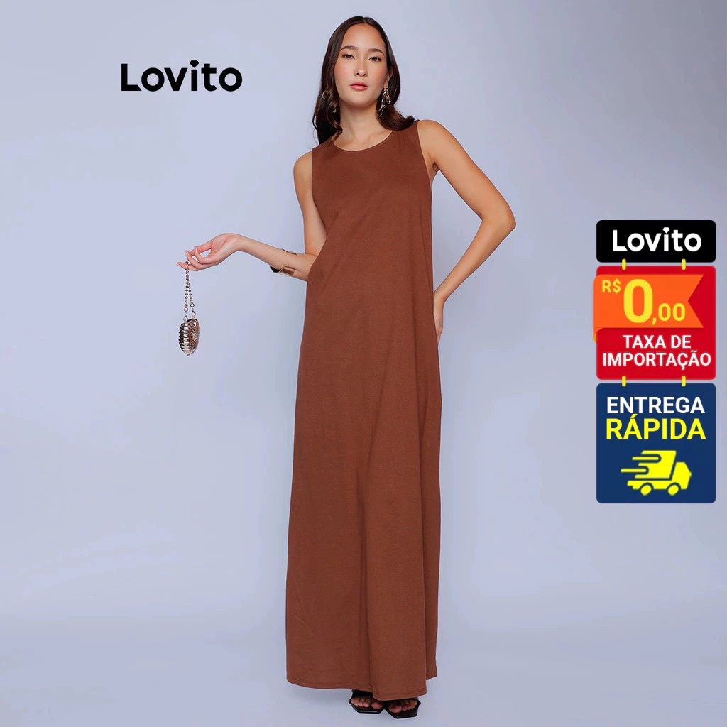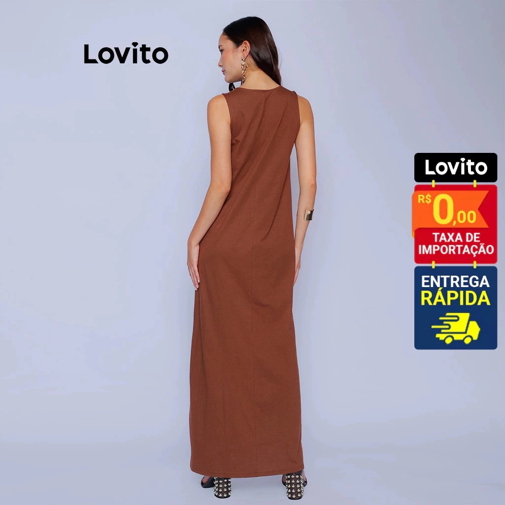 Lovito Vestido Regata Longo Marrom com Fenda Basico Feminino DRB947BRL977