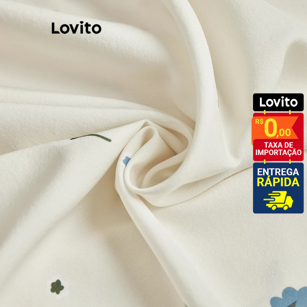 Lovito Vestido Feminino Midi Camponesa com Mangas Bufantes Floral DRB71ED267