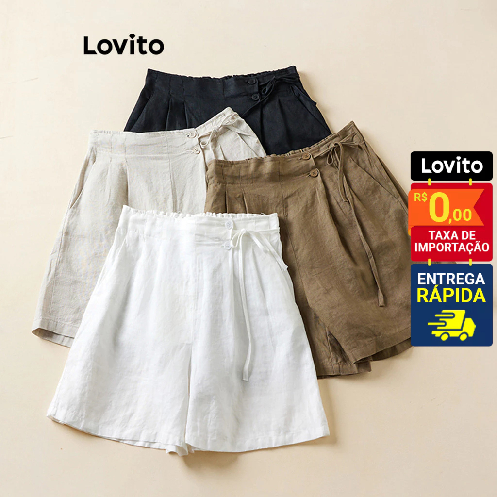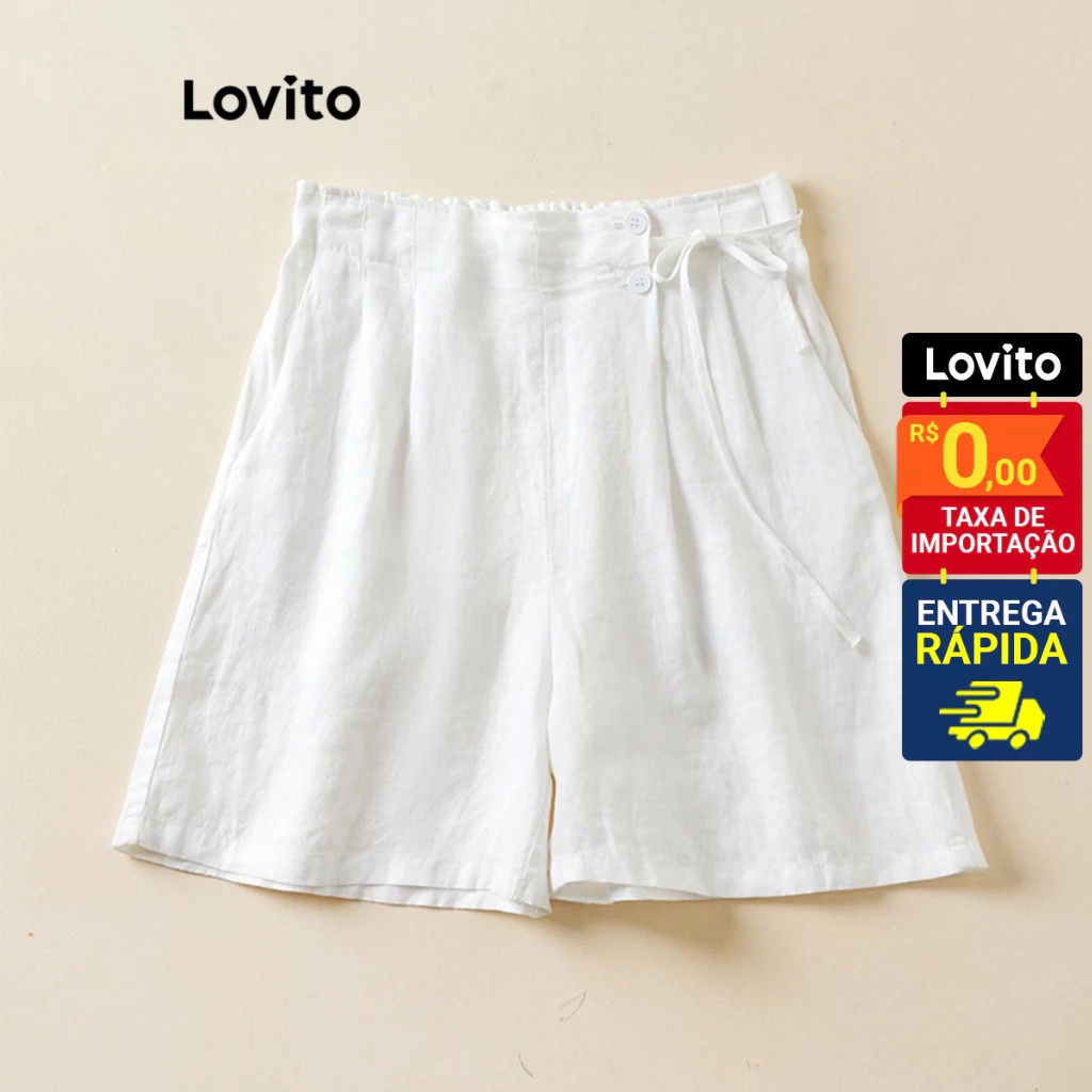 Lovito Shorts Feminino Liso Plissado de Amarrar com Bolso STNS42BX102