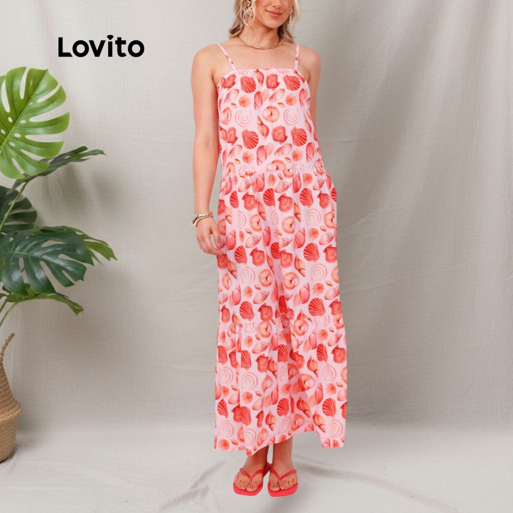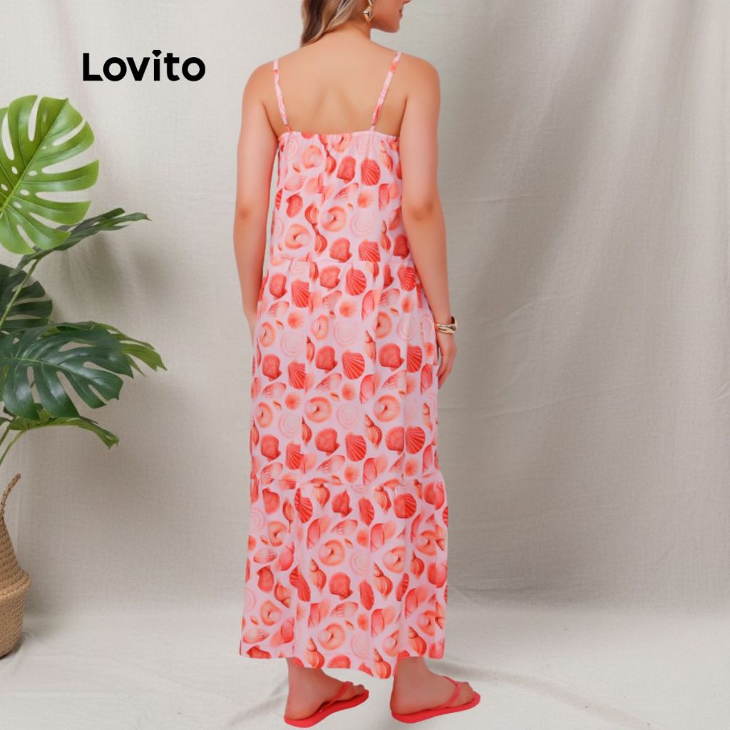 Lovito Bossa l Vestido Longo Estampado Alças Finas DRB1194BRL1224