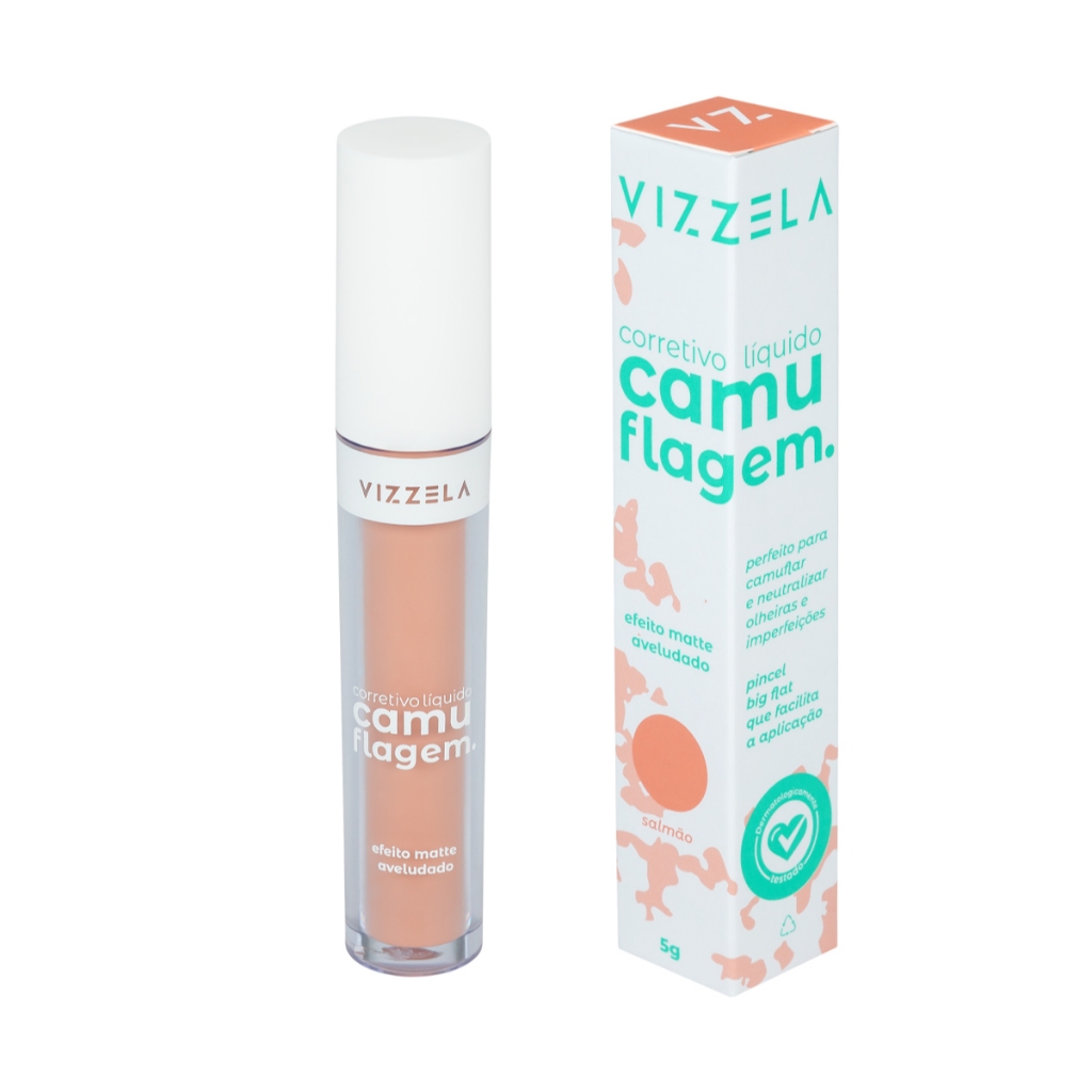 Corretivo Líquido Camuflagem Salmão Olheiras Azuladas Vegano Original Vizzela