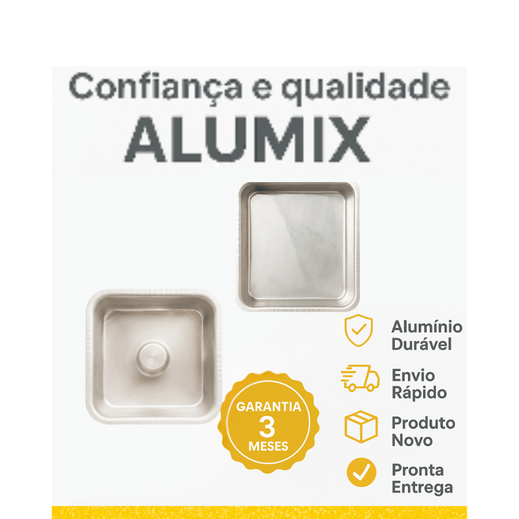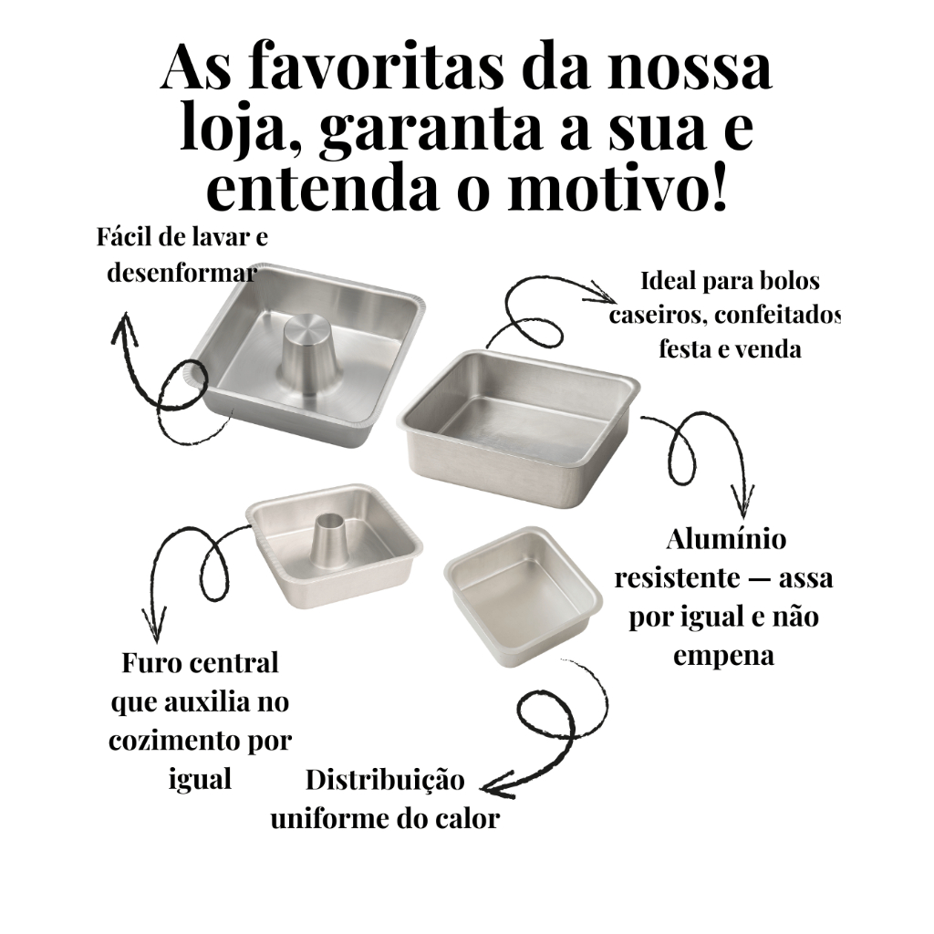Forma Quadrada Alumínio Bolo e Pudim Com e Sem Cone | 15x15x6 e 20x20x7