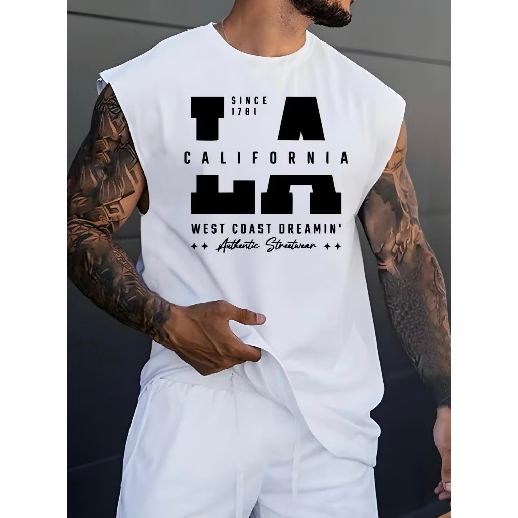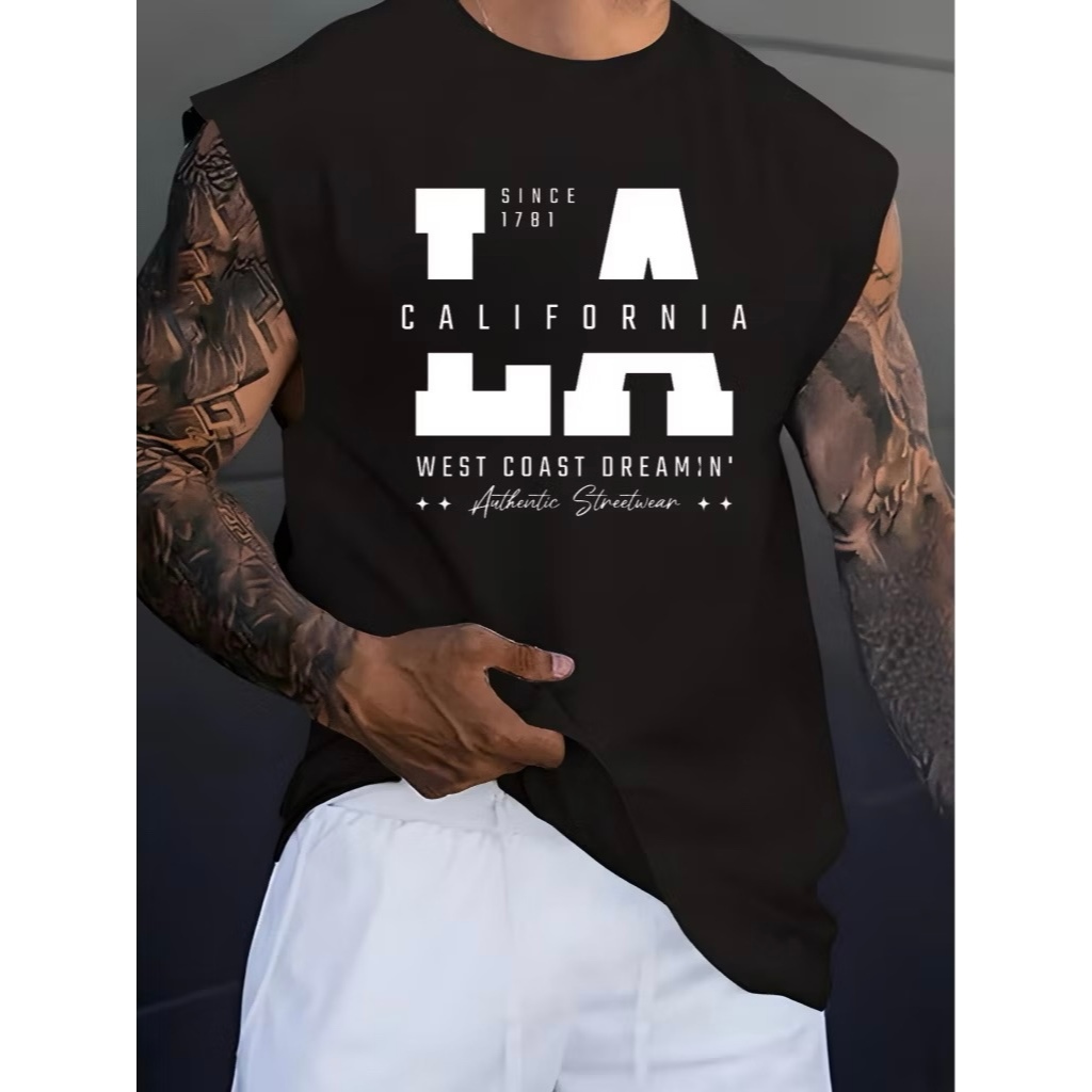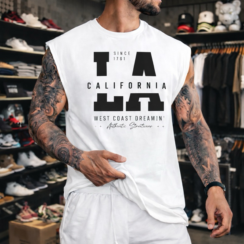Regata Masculina Algodão Camiseta Regata Oversized LA California Várias Cores Caimento Perfeito