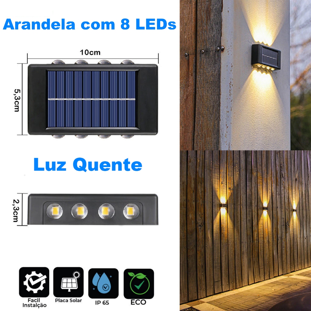 Até 10 Luminárias de Parede Externa Solar LED, Auto Ligar/Desligar, À Prova d'Água para Pátio Jardim