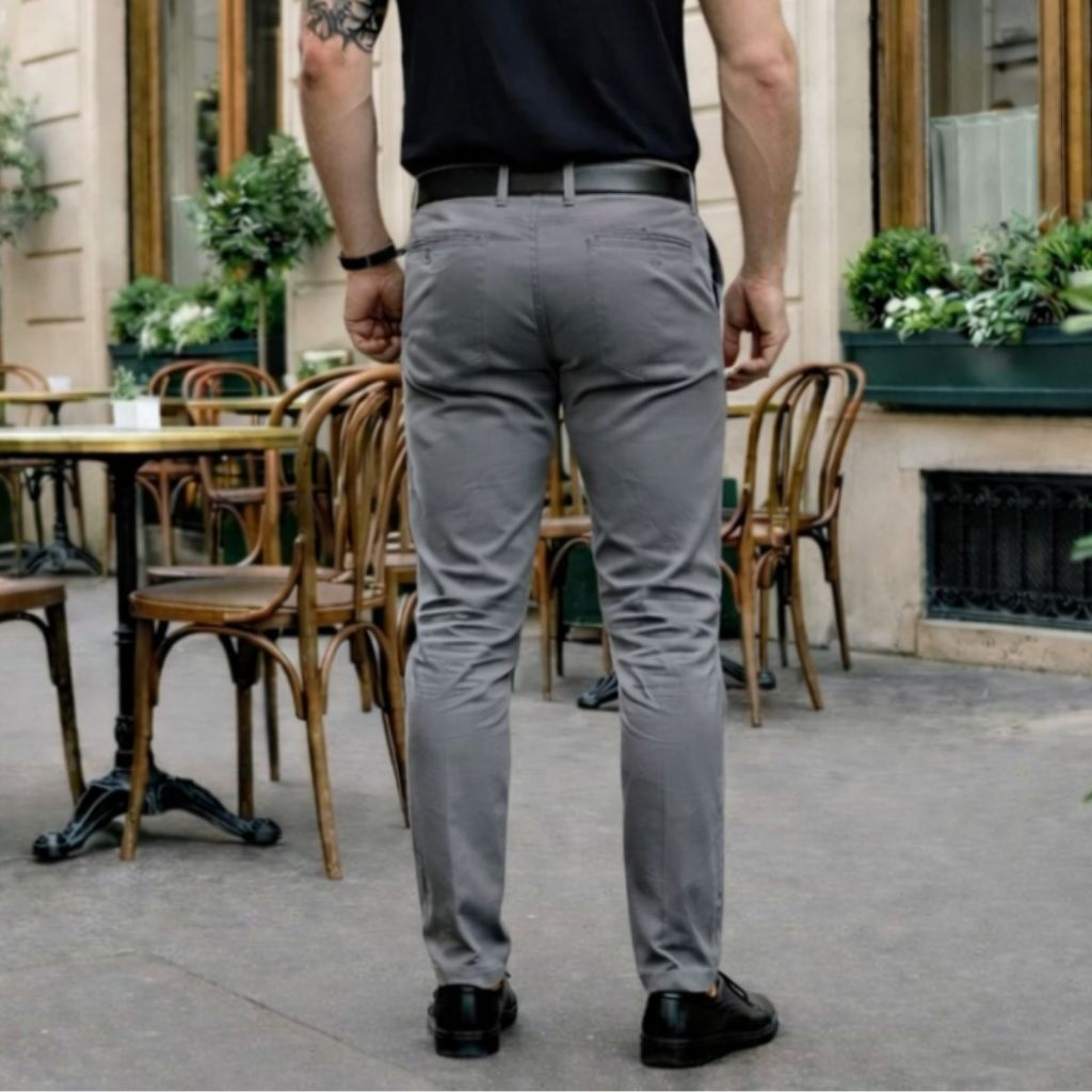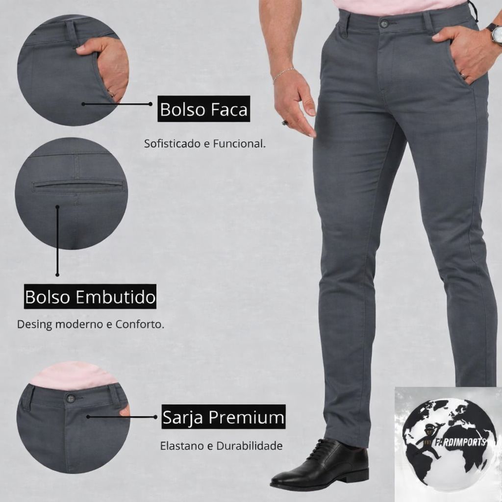 Calça Sport Fino Masculina Sarja com Lycra Cinza Escuro Social e Elegante para varias ocasiões