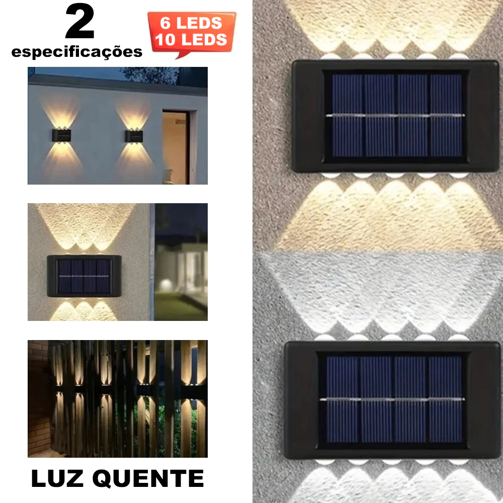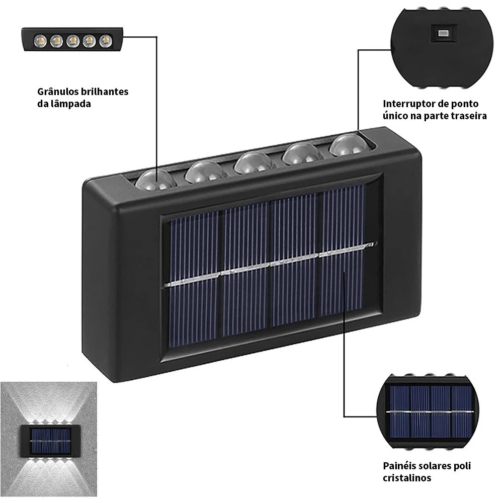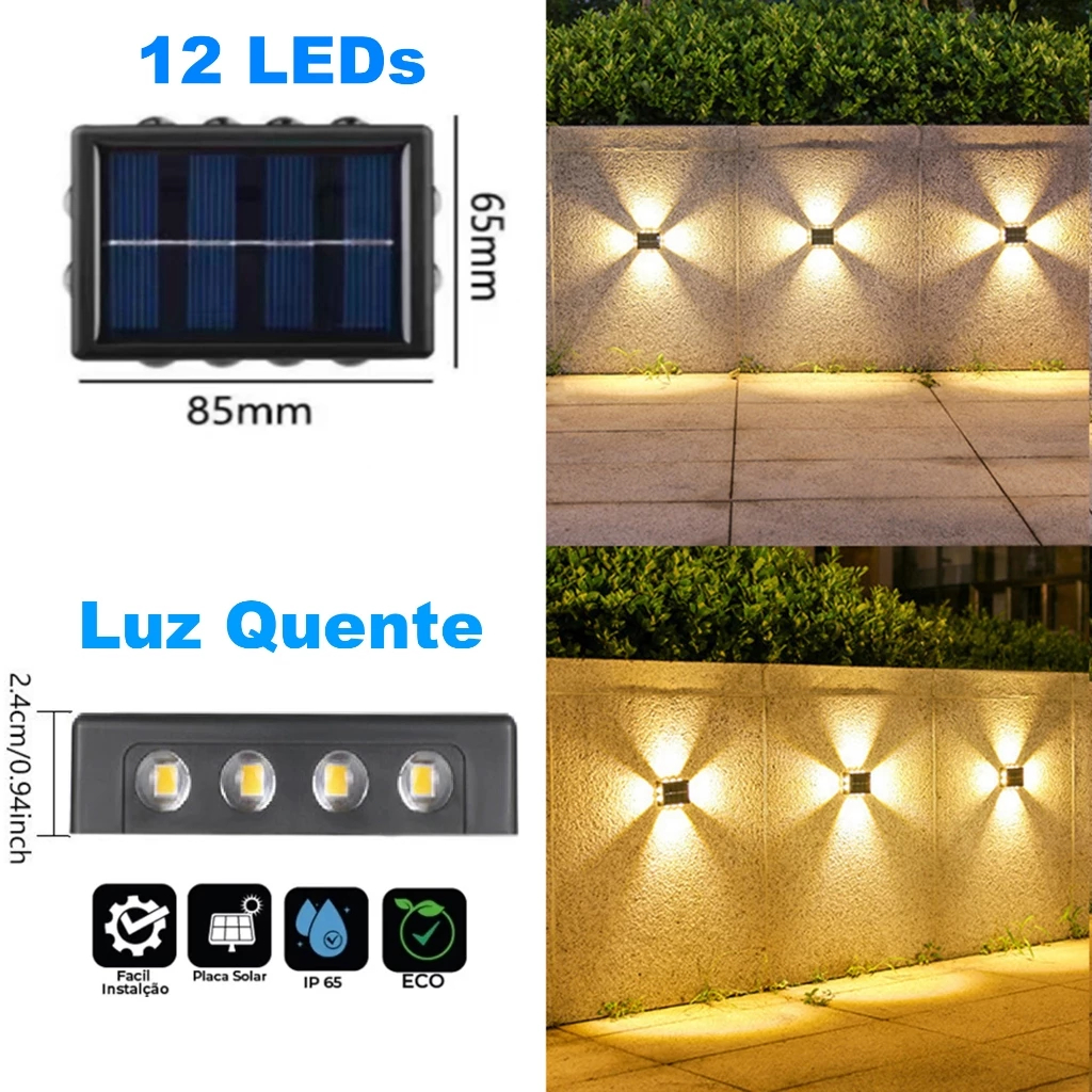 Luminária Spot Solar p/ Parede Kit 4-10 Unid Impermeável (IP65) Luz Branca Quente 6 8 ou 10 12 LEDs
