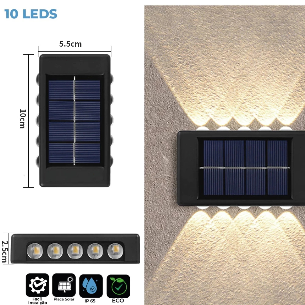 Até 10 Luminárias de Parede Externa Solar LED, Auto Ligar/Desligar, À Prova d'Água para Pátio Jardim
