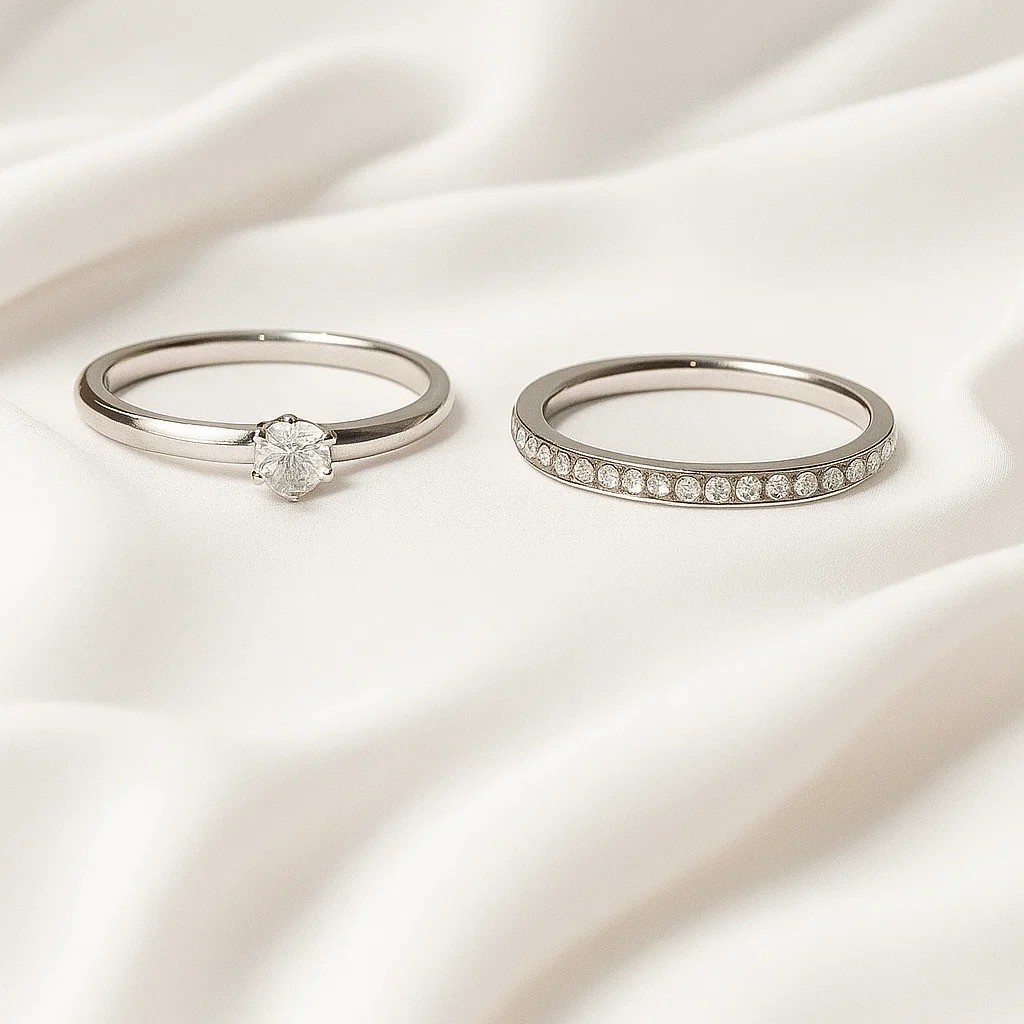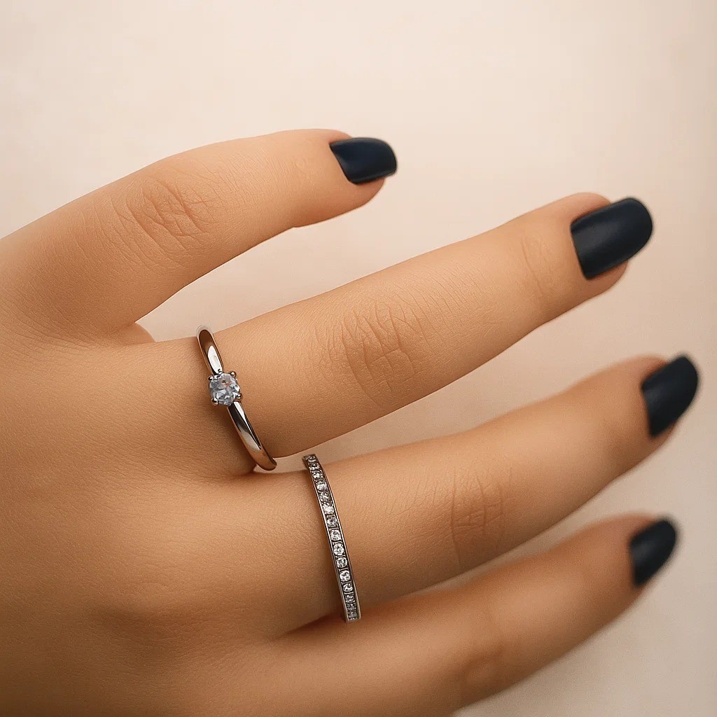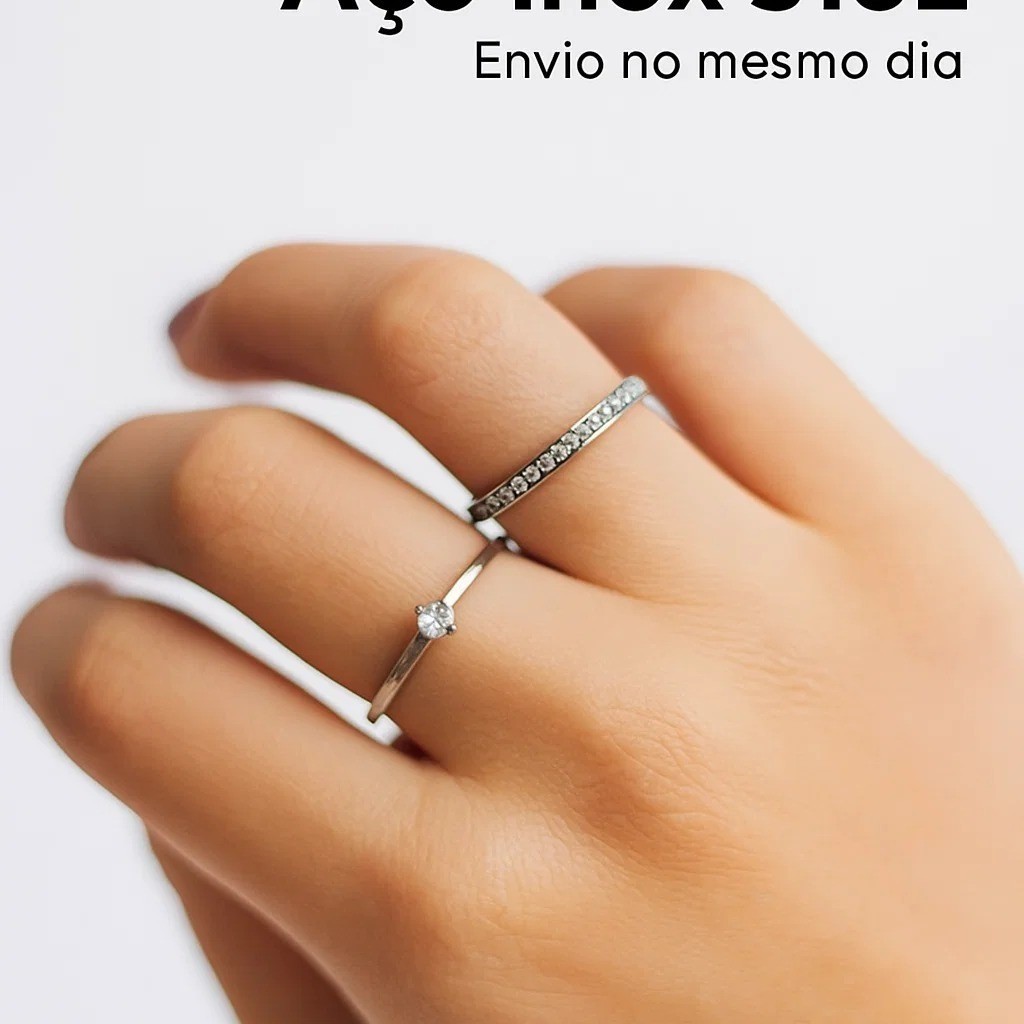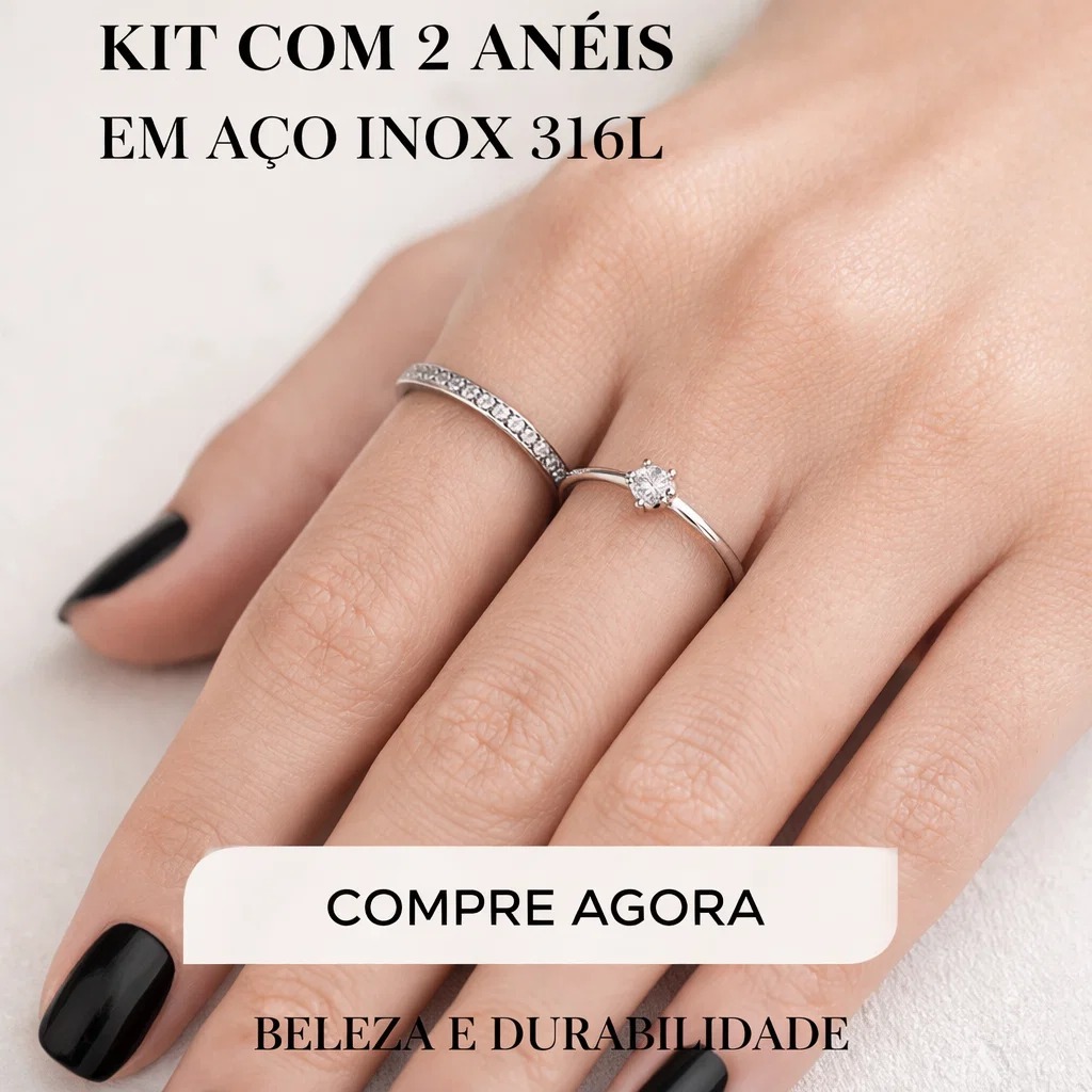 Kit Com 2 Anéis Femininos Prata Elegante em Aço Inoxidável Modernos Elegantes e Duráveis