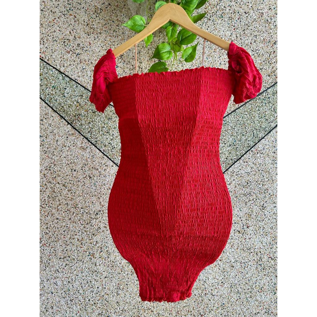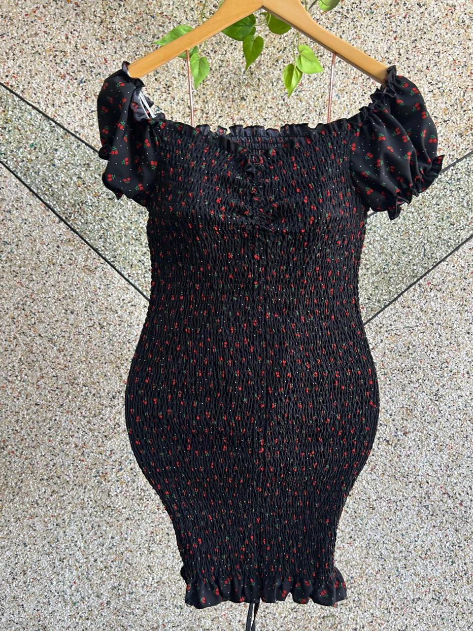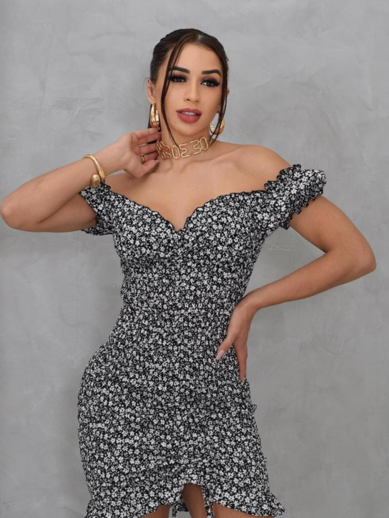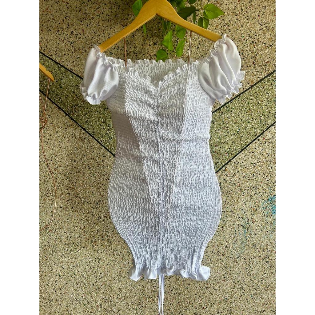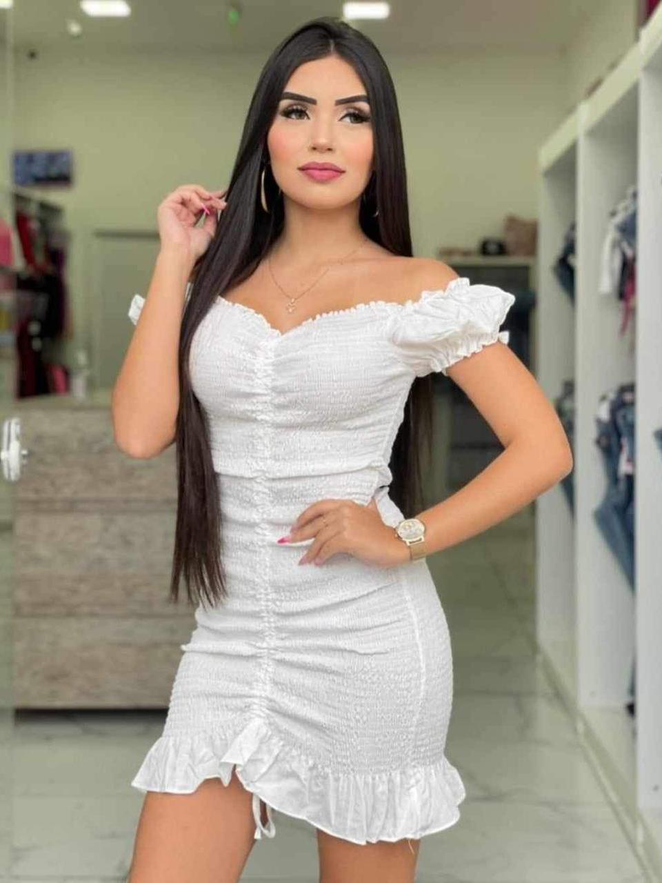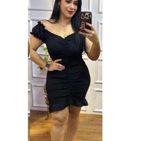Vestido Feminino em Tecido Crepinho com Lastex e Manga Moda Feminina 2025