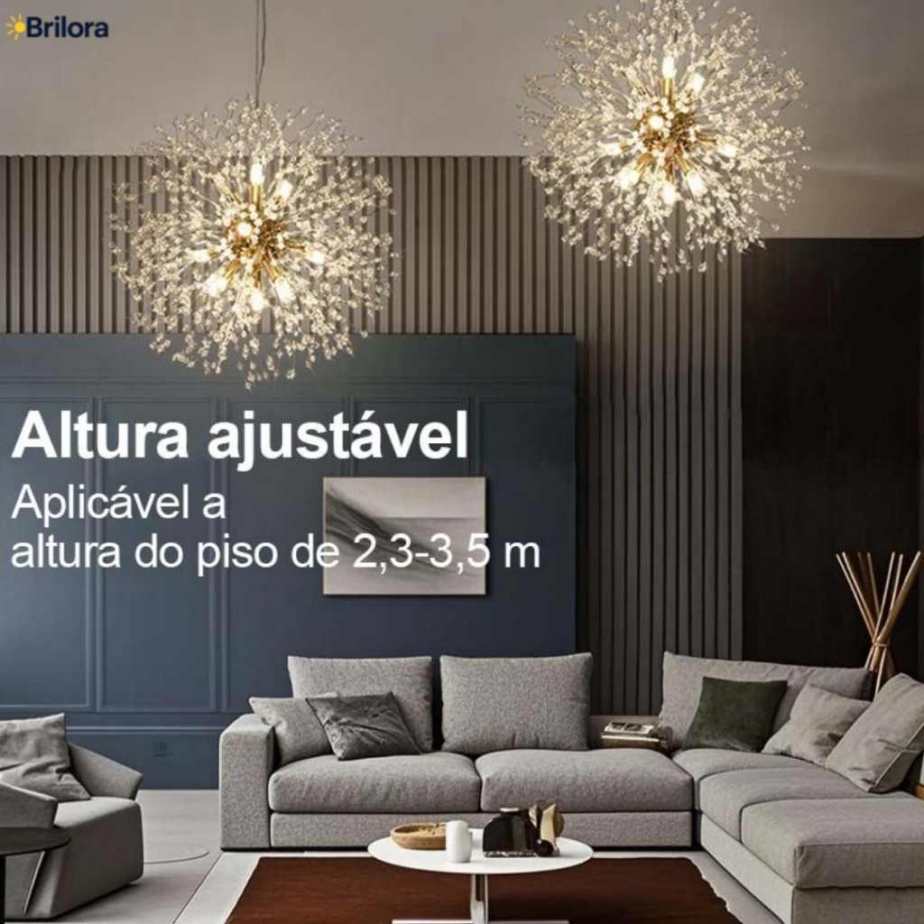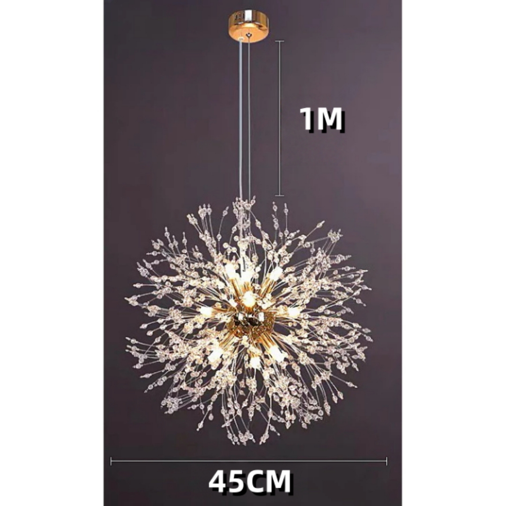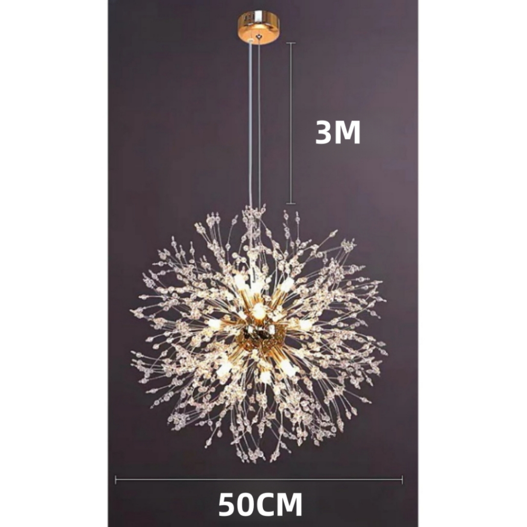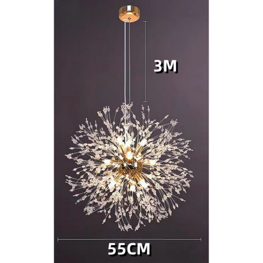Vila Sala De Estar Dourado Lustre Pendente Cristal Dente De Leão 45cm/55cm/50cm +G9 lâmpada