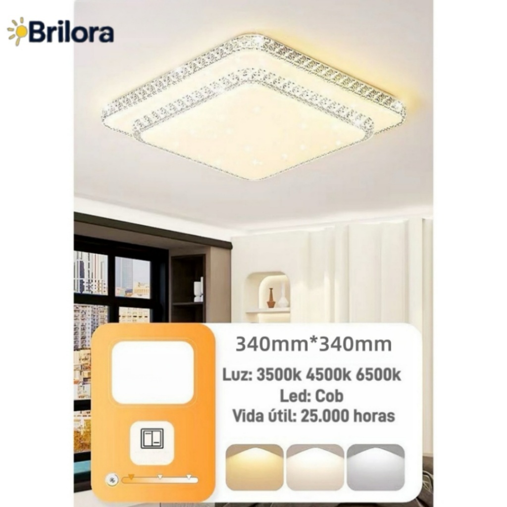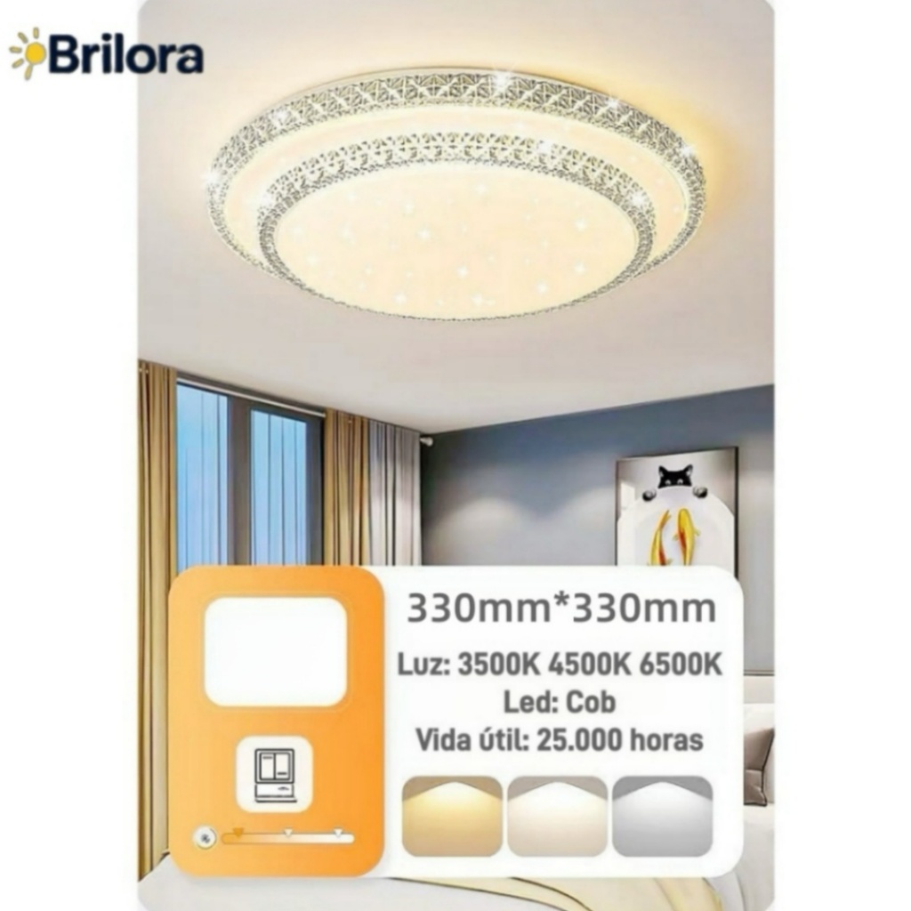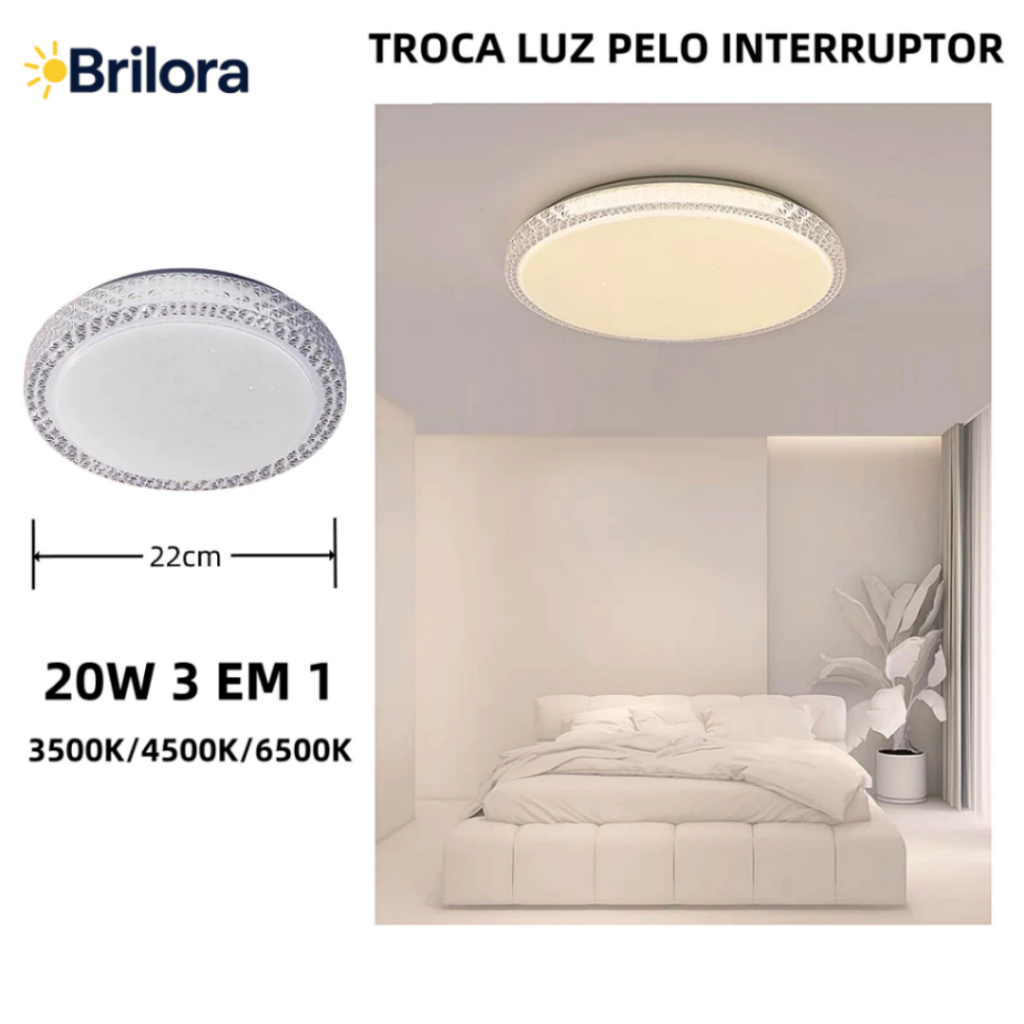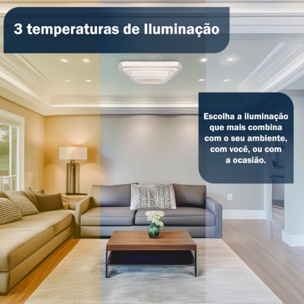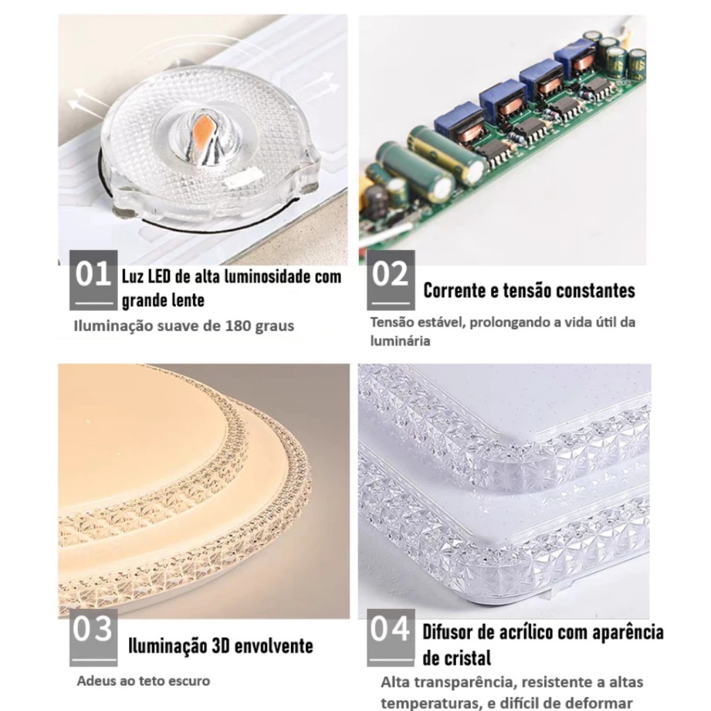 Luminária Teto Plafon Led Sobrepor Efeito Cristal Céu Estrelado Brilhante 3 Cor Em 1 Borda Infinita