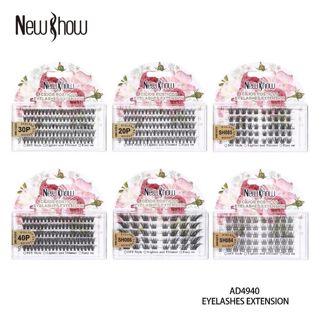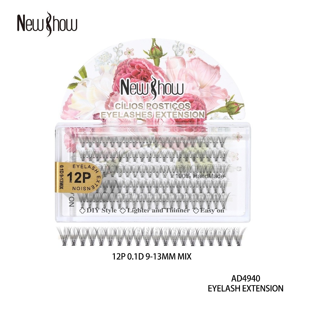 New Show KIT 100 Cílios Tufos Sem Nó Extensão de Cilios Alongamento/PACOTE MÚLTIPLO