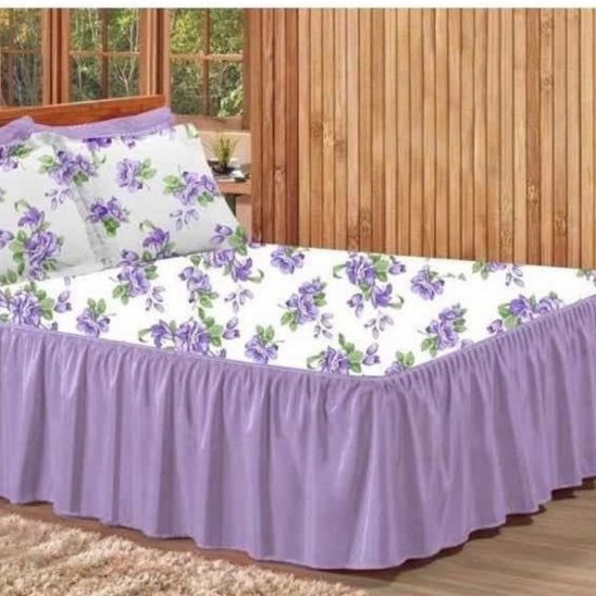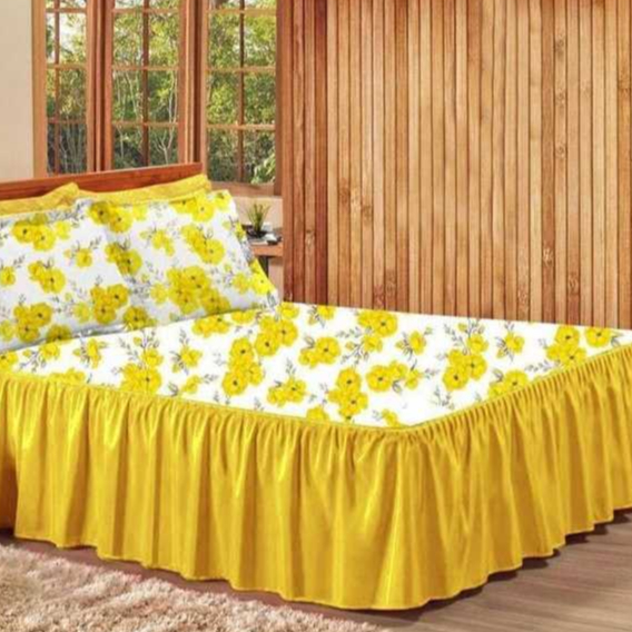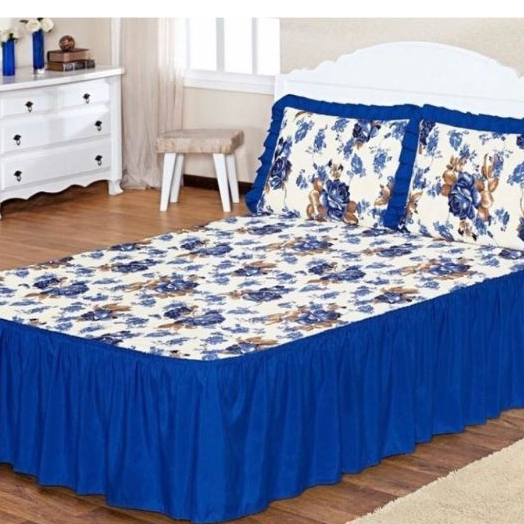 Colcha Cobre Leito Cama Casal Estampada Floral de Oxford Com Babado e Com Porta Travesseiros Fronhas