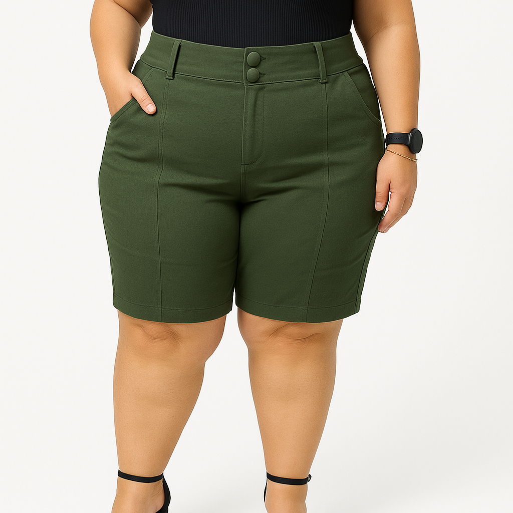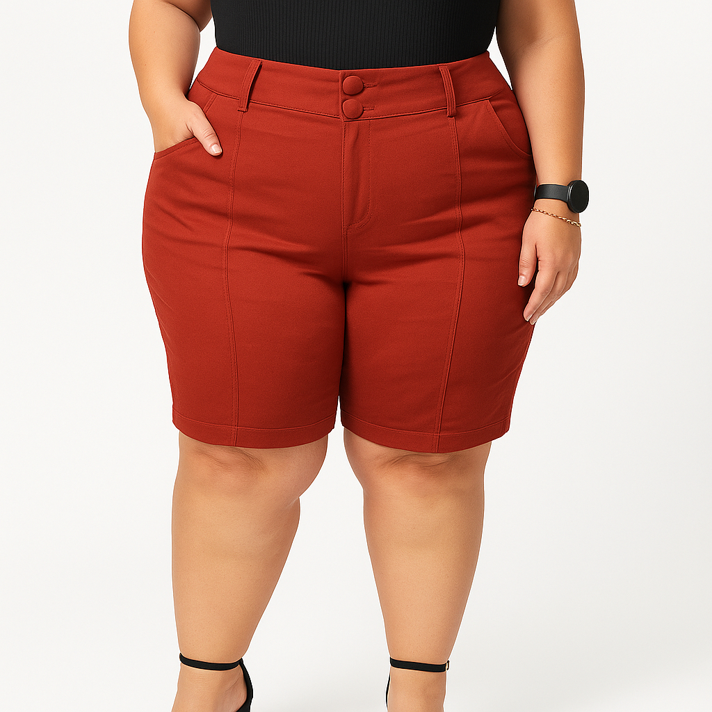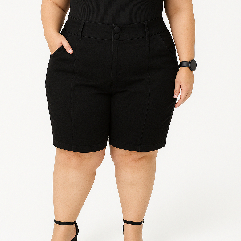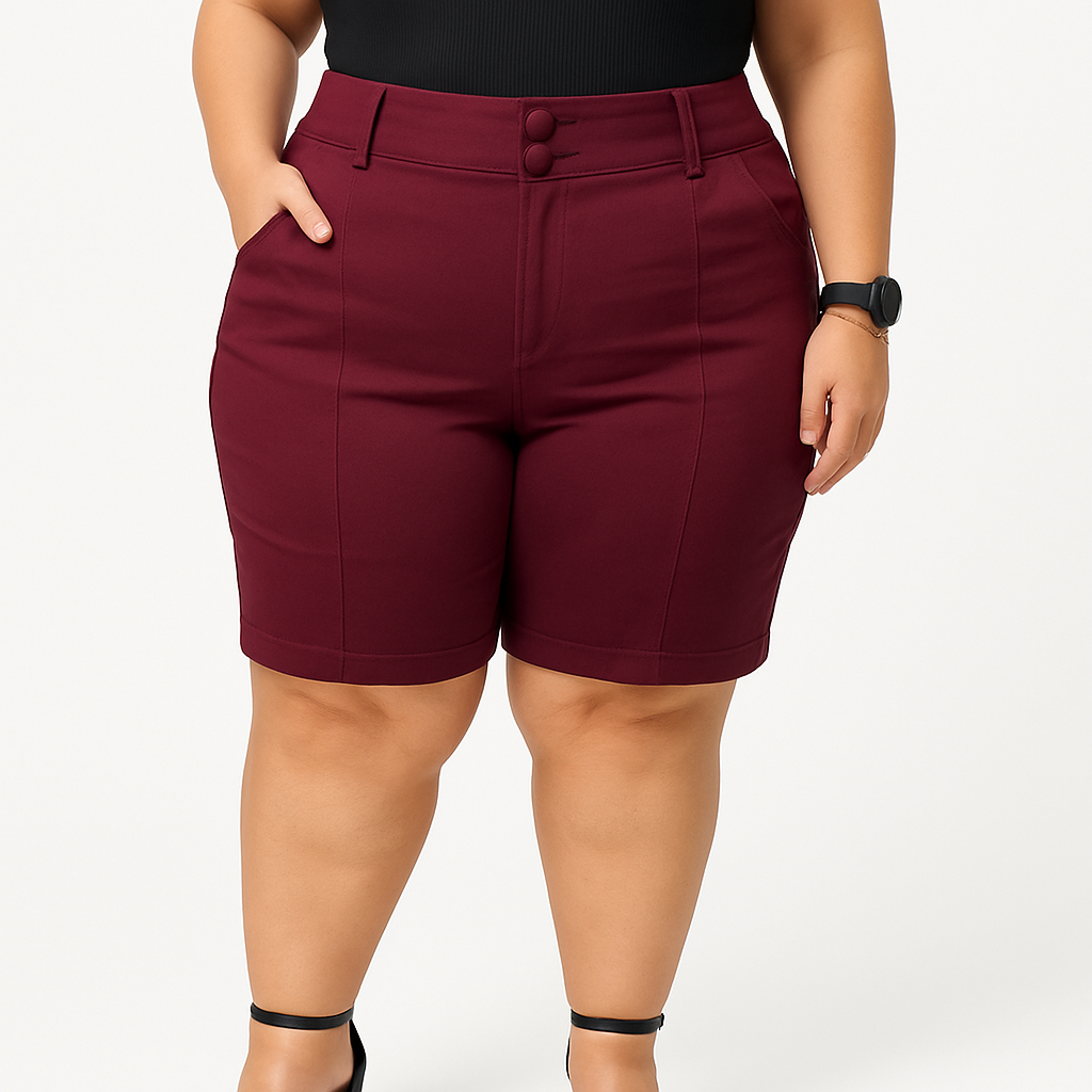 Shorts Bermuda Feminina Plus Size Social Com Botão Bengaline Cintura Alta 42 ao 52