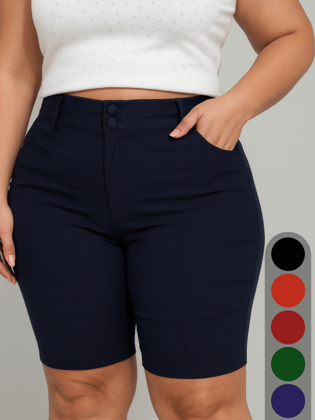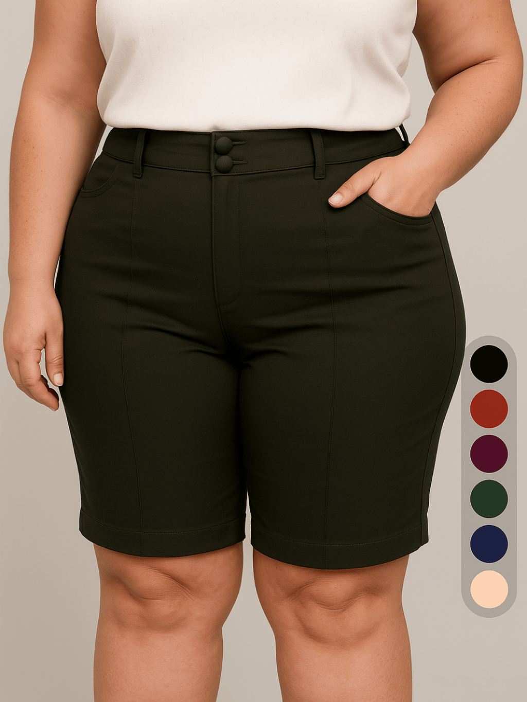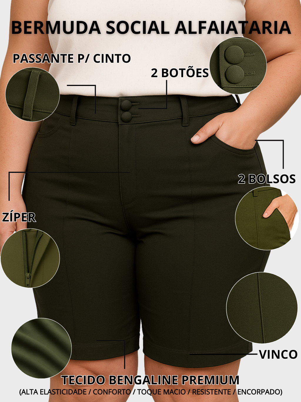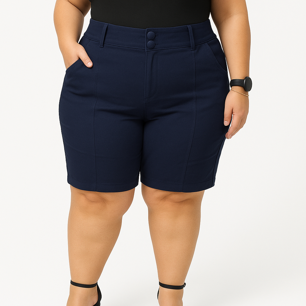 Shorts Bermuda Feminina Plus Size Social Com Botão Bengaline Cintura Alta 42 ao 52