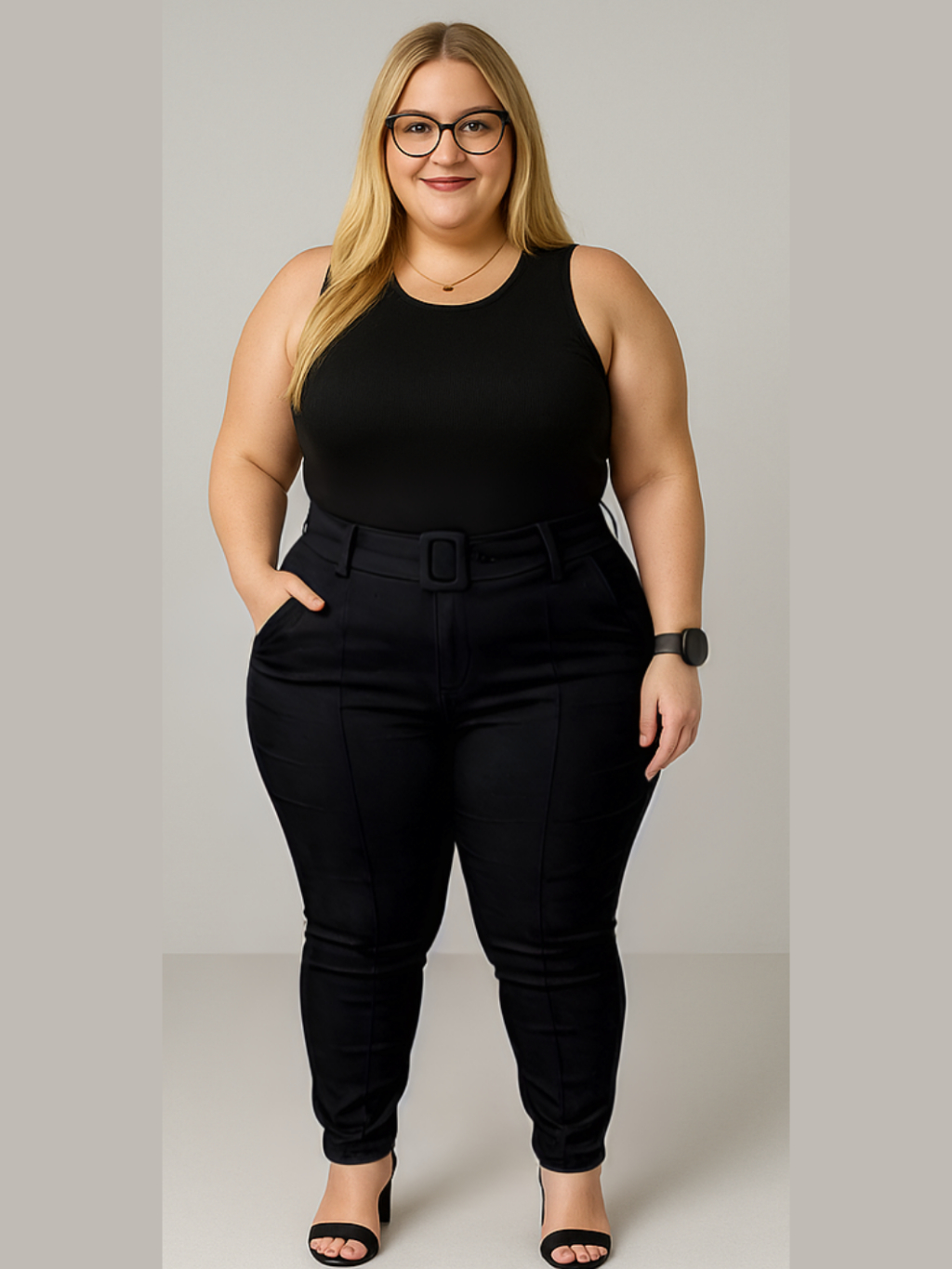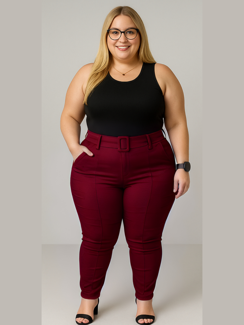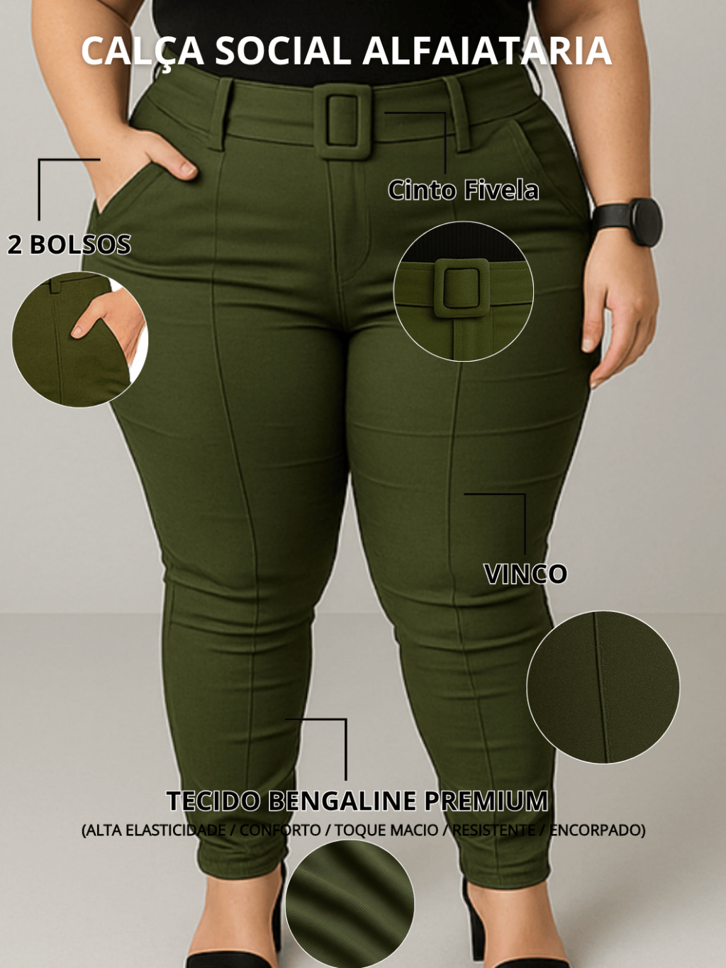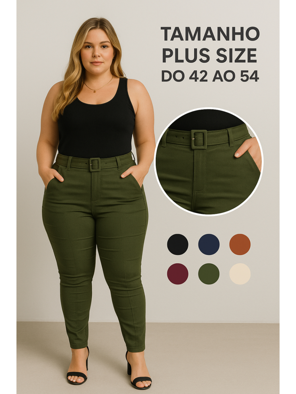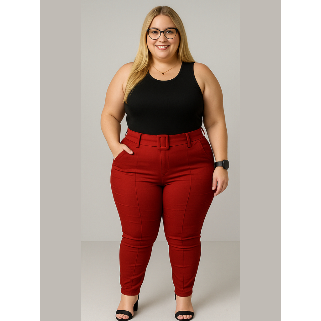 Calça Plus Size Feminina Social Tecido Bengaline Estica Muito com Bolso e Cinto Alfaiataria 42 ao 52