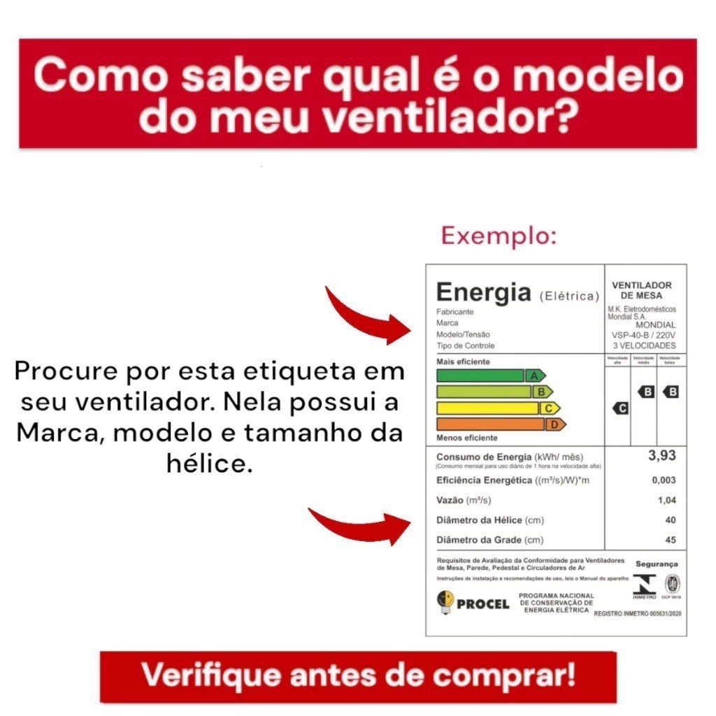 Hélice Para Ventilador Ventisol 40cm 6 Pás Prata Turbo Premium