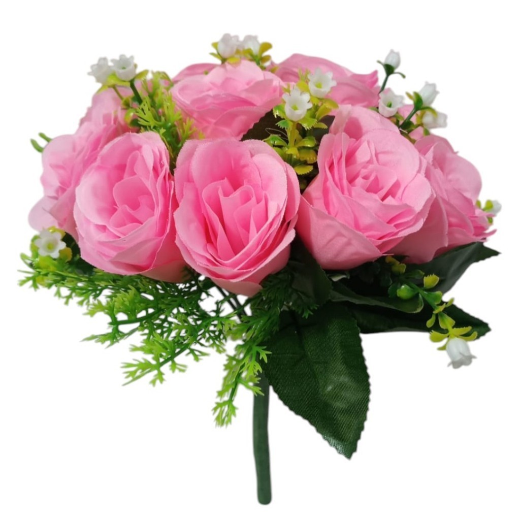 Buquê de Rosas C/12 Flores Plantas Artificiais Decoração