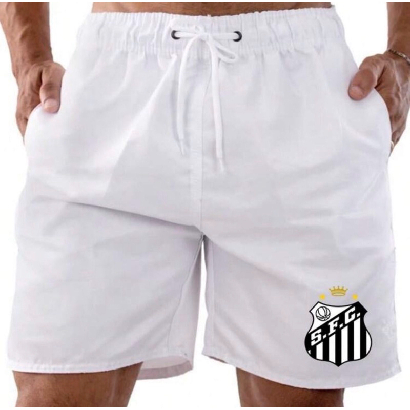 Short Bermuda Tactel Praia Mauricinho Treino Academia Corrida Esportivo Esporte Masculino Futebol Time Santos
