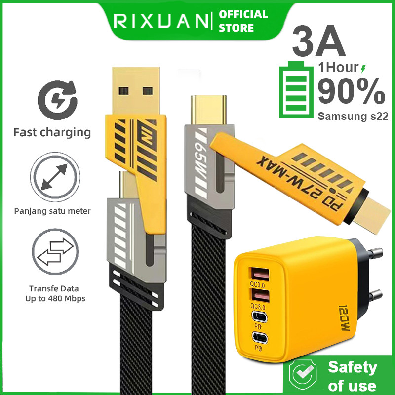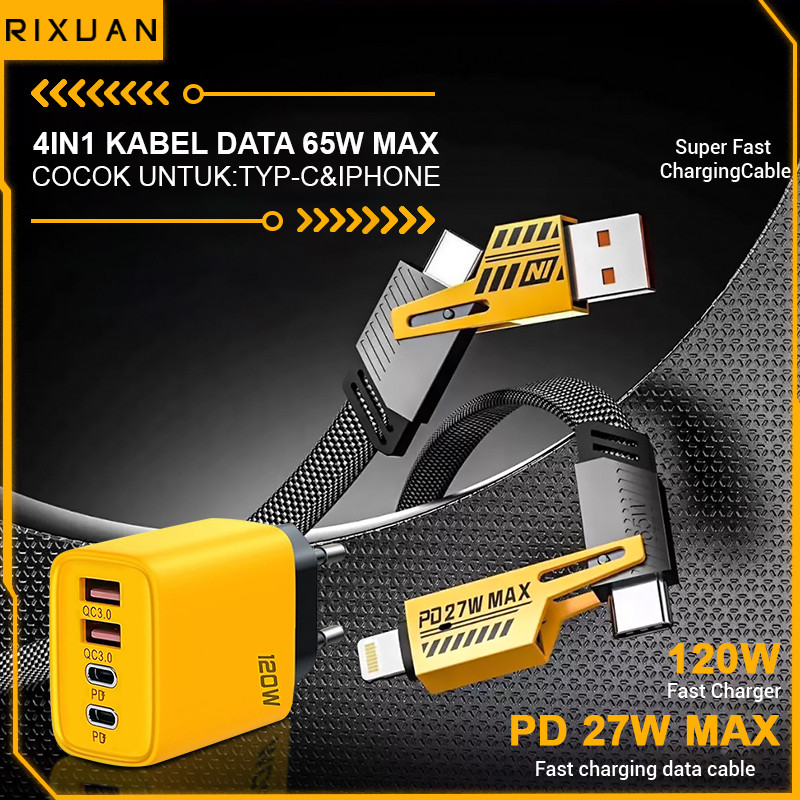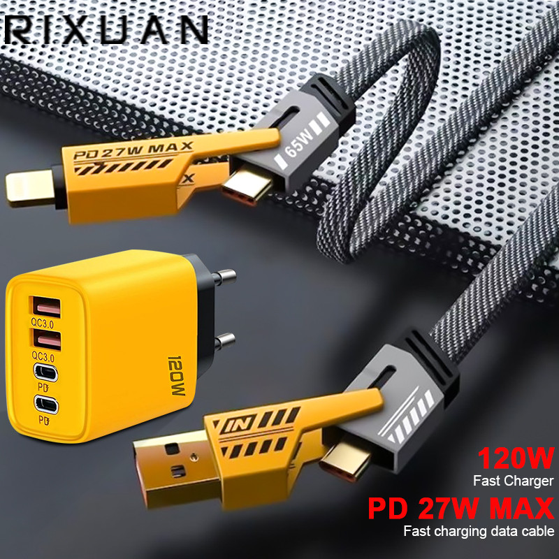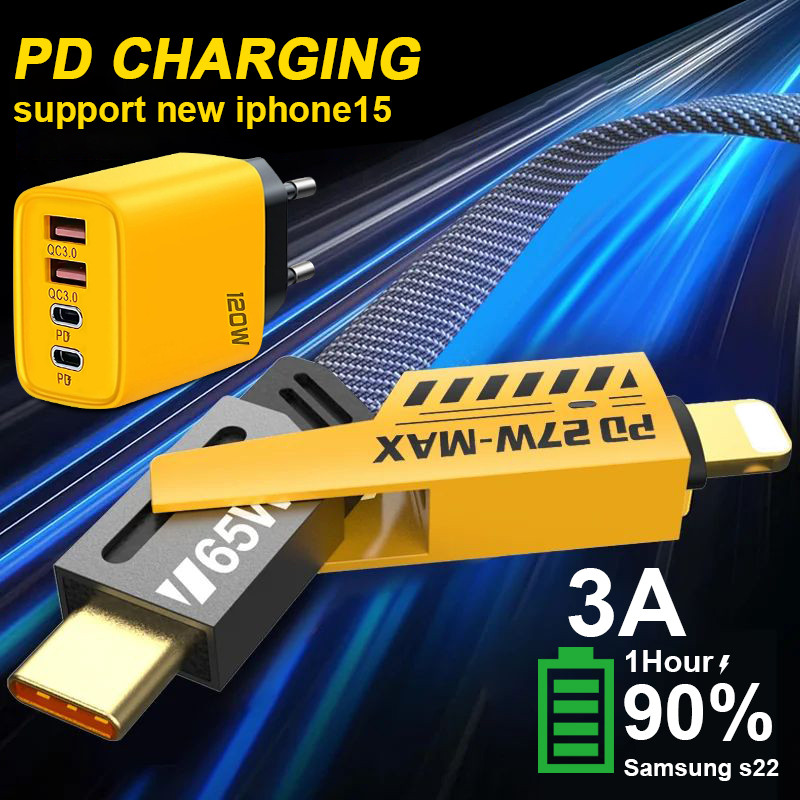 Yellow charger 120W fast charging/Type C/USB/iOS/Type C/4-in-1