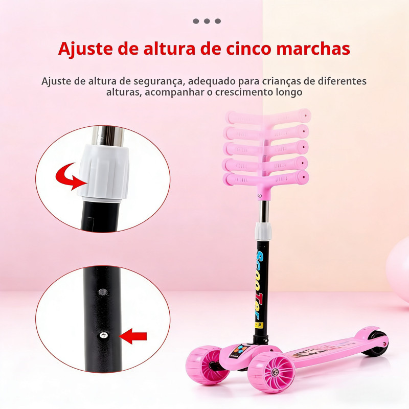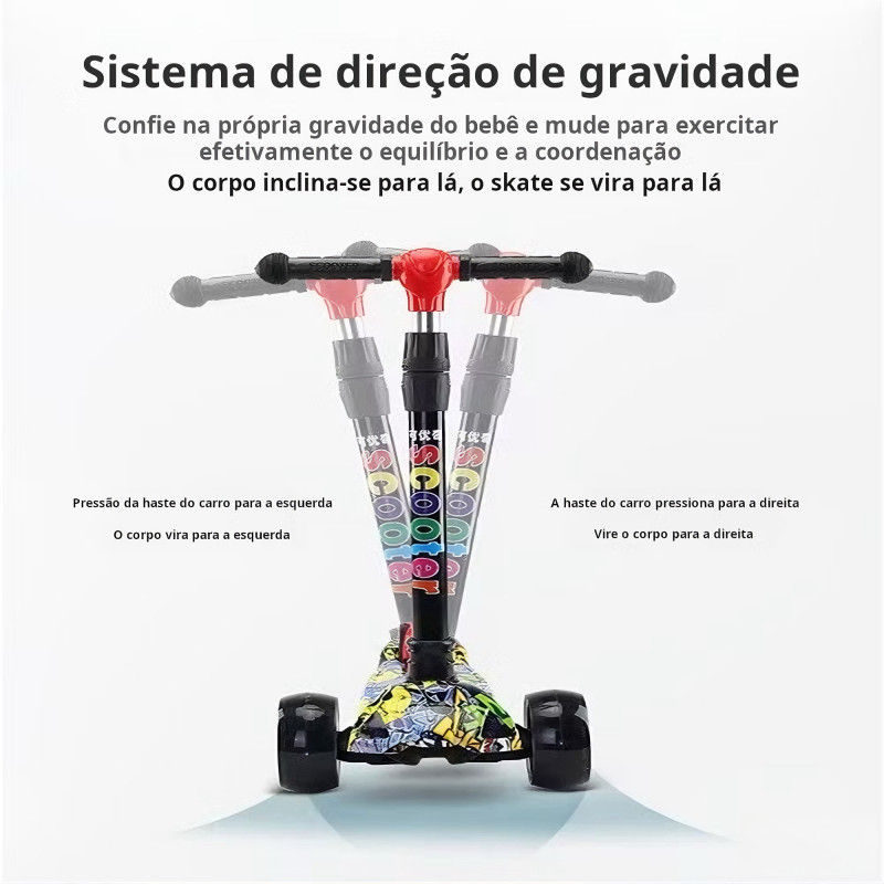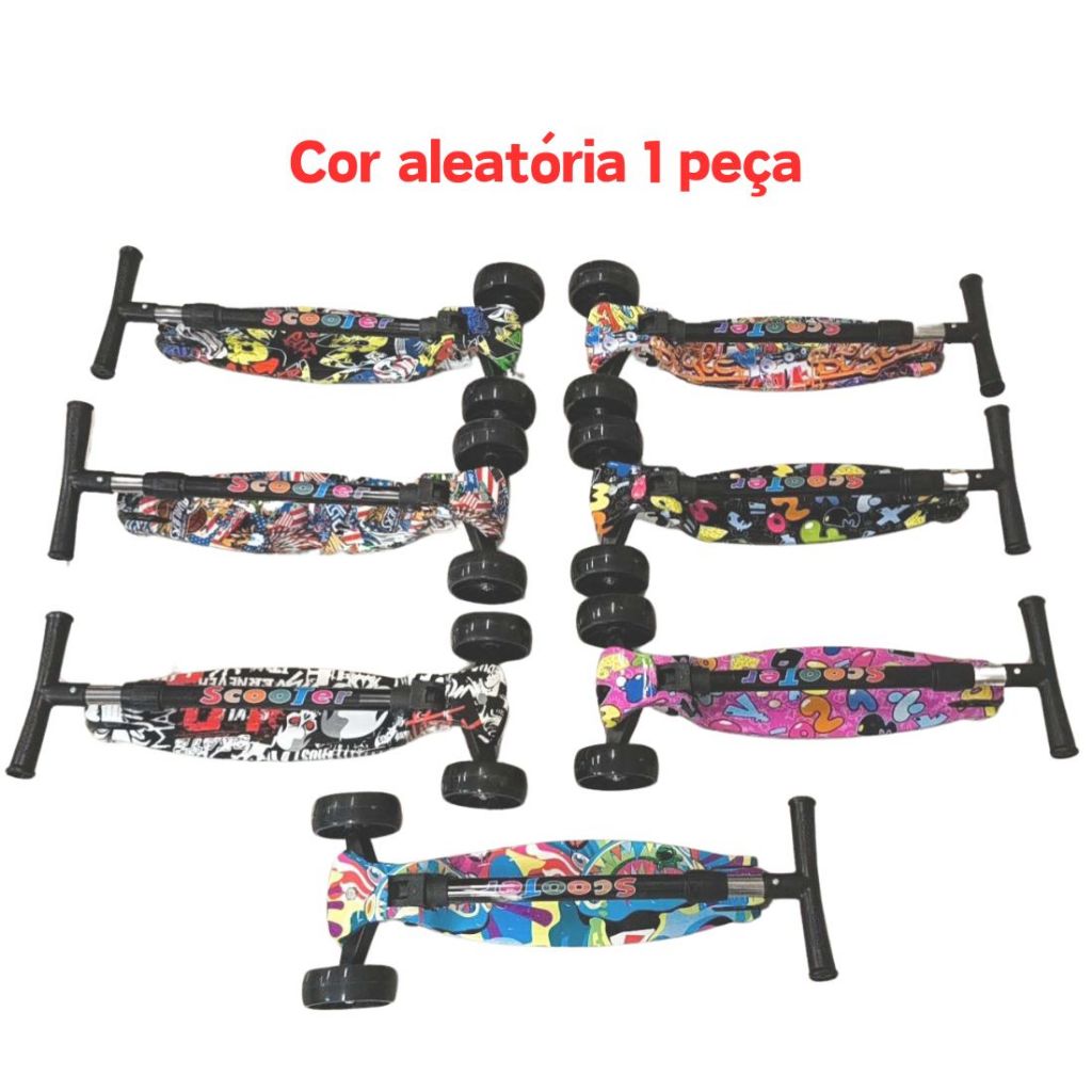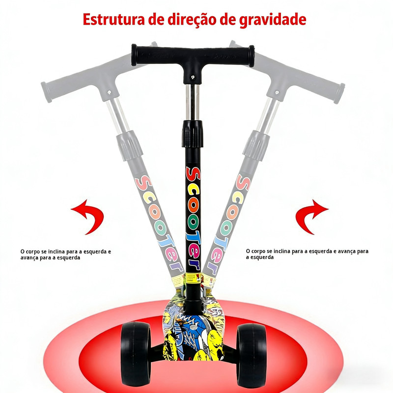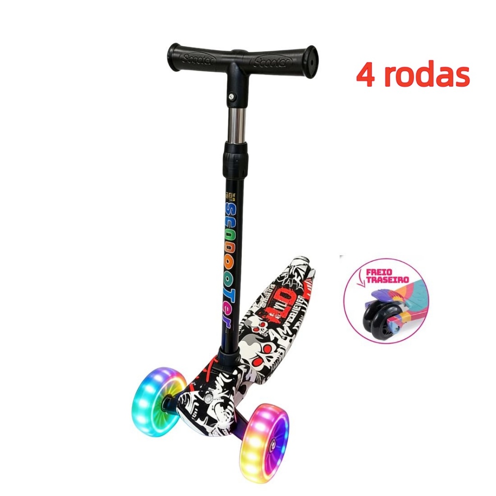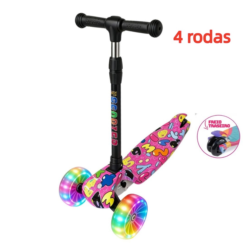 Patinete Infantil 3-5 Anos 4 Rodas LED Ajustável em Altura Estilo Graffiti para Menino e Menina