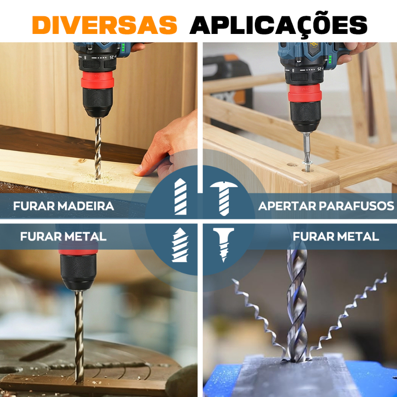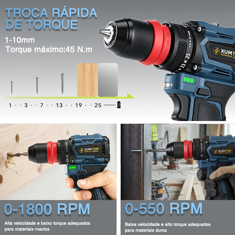Parafusadeira Furadeira Brushless Sem Fio 16.8V Profissional Com 2 Baterias Maleta -23peças