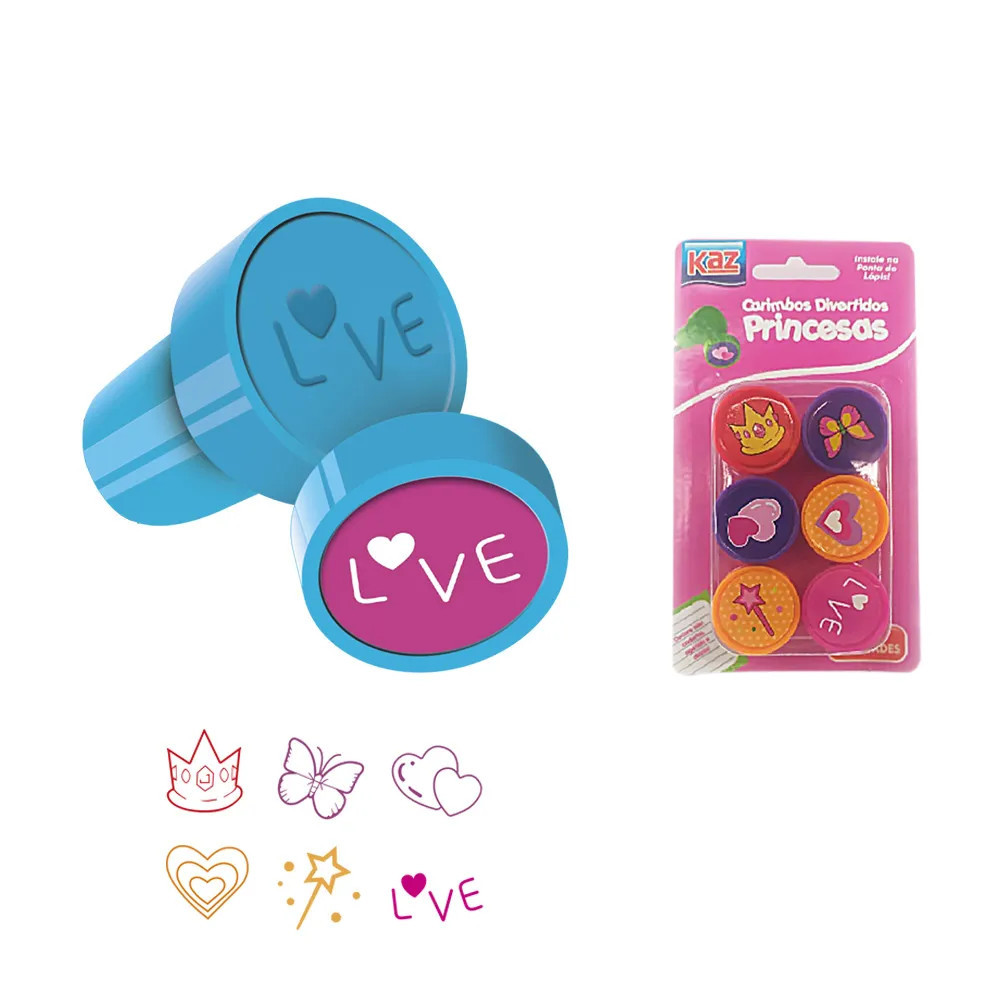 Kit 06 Carimbos Fun Coloridos Divertidos Animais/FRUTINHAS/Princesas