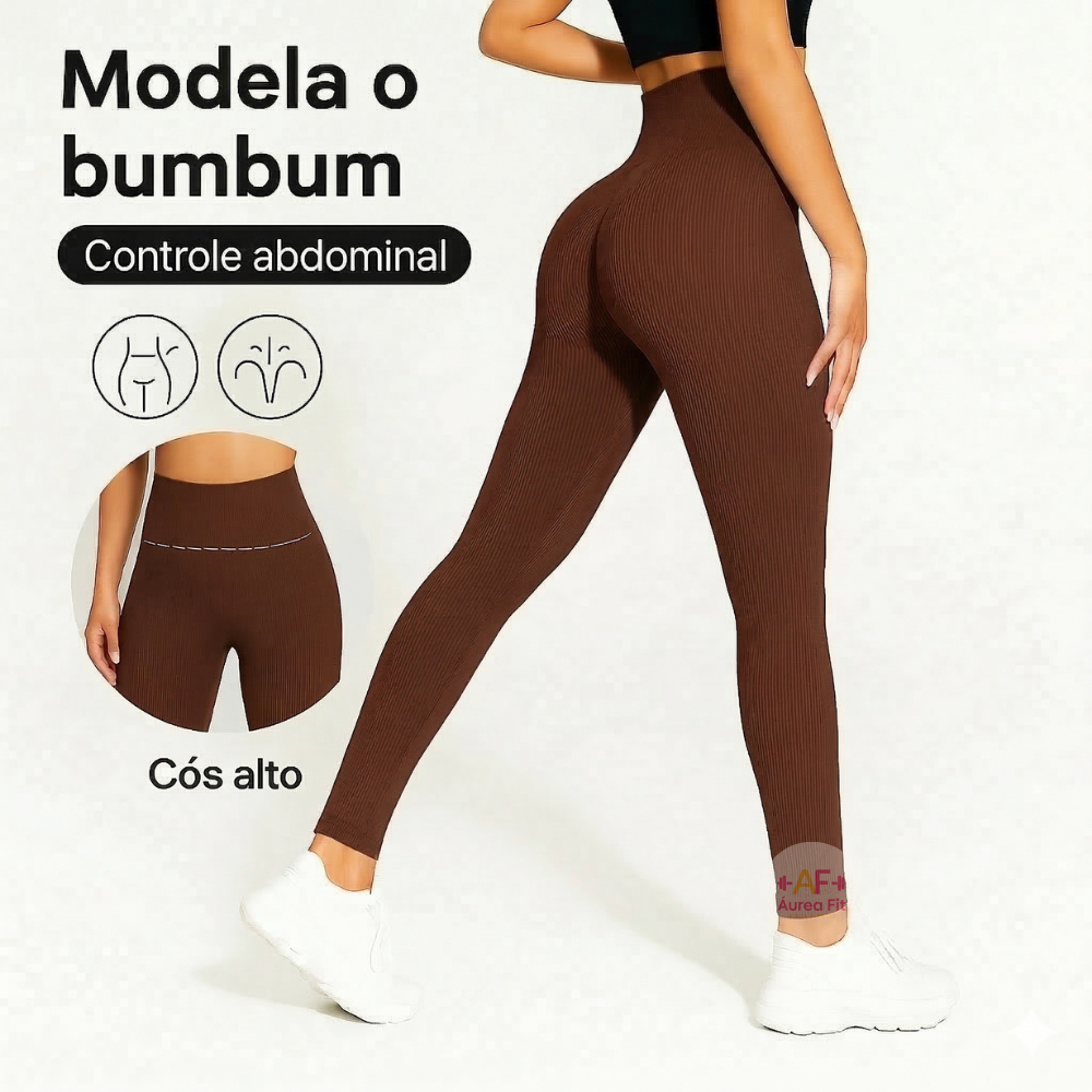 Calça Legging Canelada Premium de Cintura Alta Sem Costura Academia Feminina Elástica e Fitness