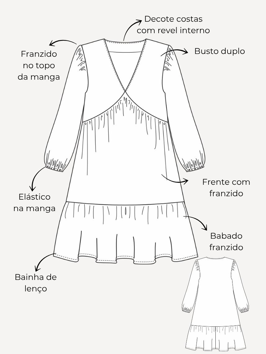 MOLDE PAPEL KRAFT VESTIDO COM MANGA BUFANTE AMANDA PLUS SIZE - MOLDE DE ROUPA MODELAGEM PARA COSTURA