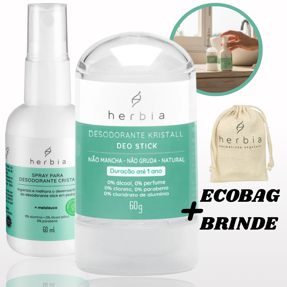 Kit Desodorante Kristall 60g + Spray de Melaleuca Herbia Kristall