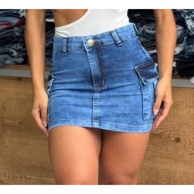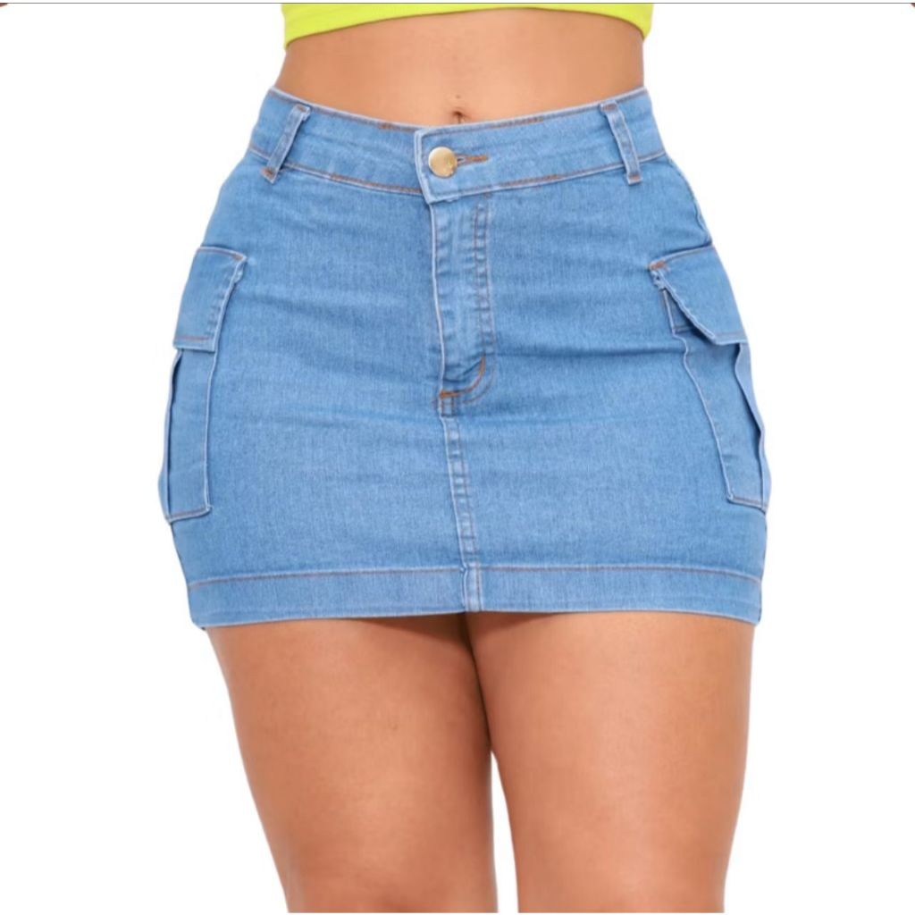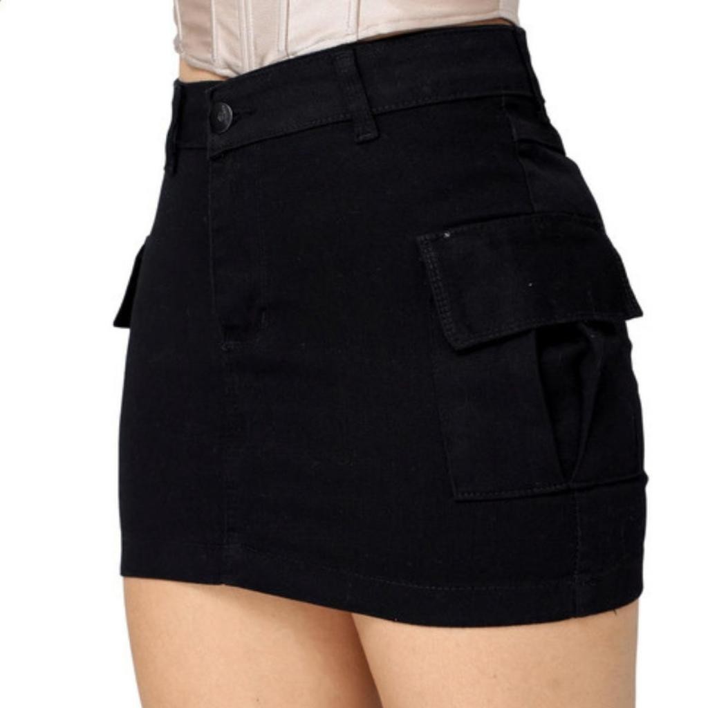 Saia Cargo Curta Feminina Moda com Lycra Bolso na Lateral Estilosa Cintura Alta