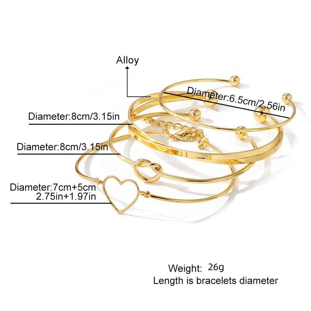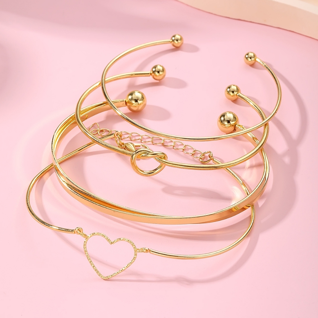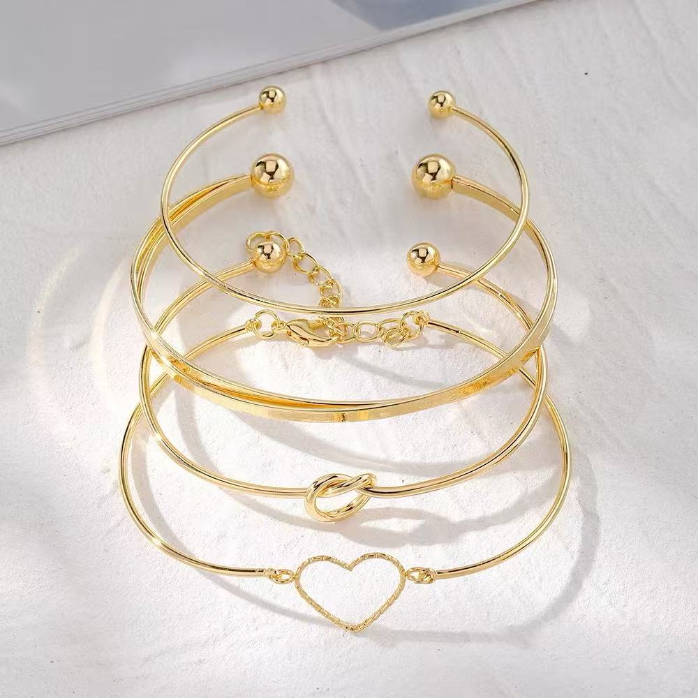 Conjunto de 4 pulseiras ajustáveis em forma de coração - Acessórios elegantes e empilháveis para mulher