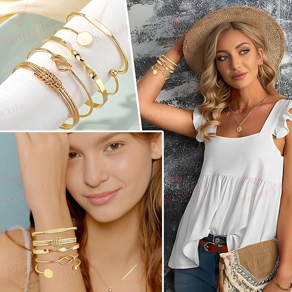 Novo Conjunto De Pulseira De Torção Geométrica 5 Peças Para Mulheres Minimalista Empilhável Presente De Joias Da Sorte C