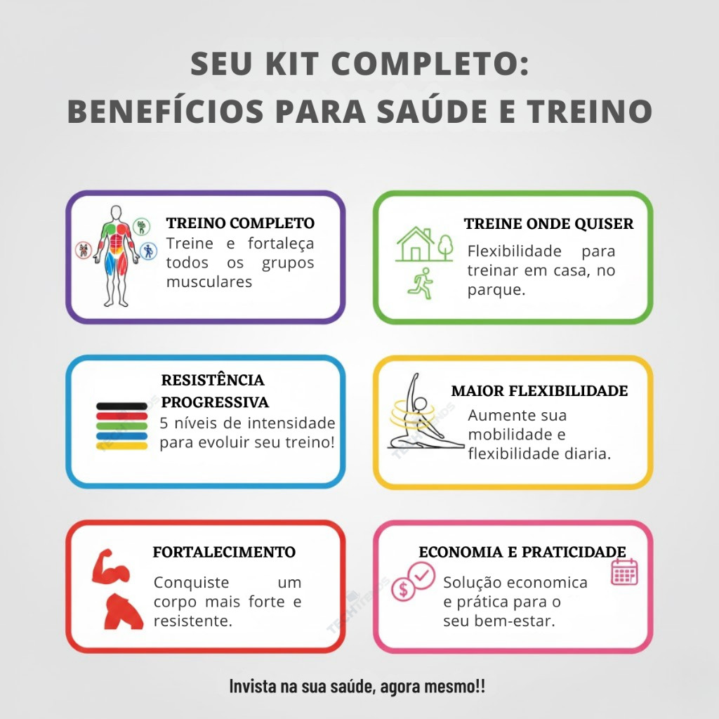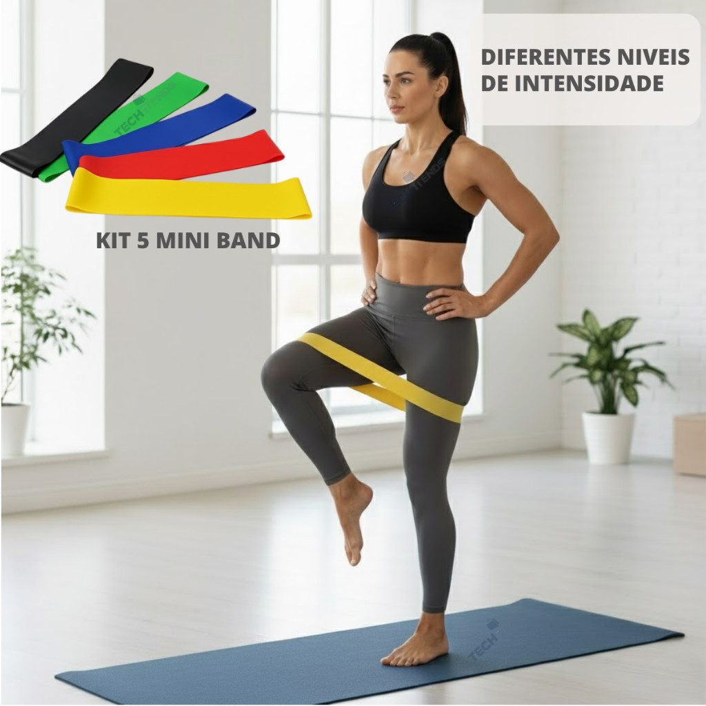 Kit 5 Elástico Treino Mini Band + Faixa Elástica +Elástico Exercício Extensor Fisioterapia Funcional
