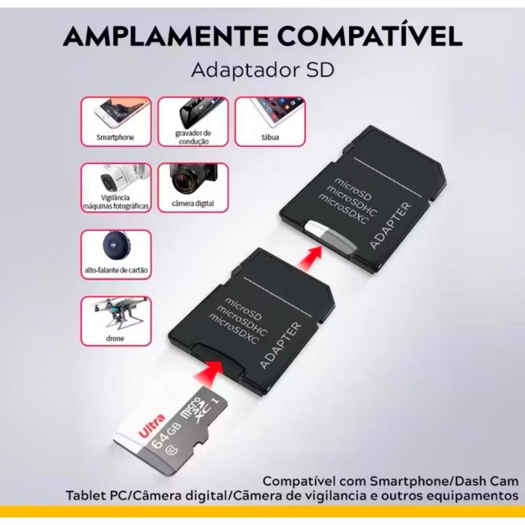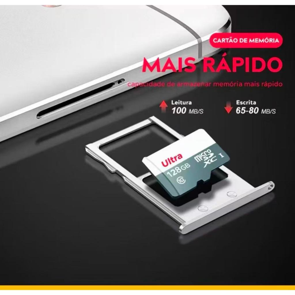 Kit1/2 Cartão de Memória MicroSD Classe 10 Ultra 64GB e 128GB 256GB para Monitoramento e Câmeras de Segurança