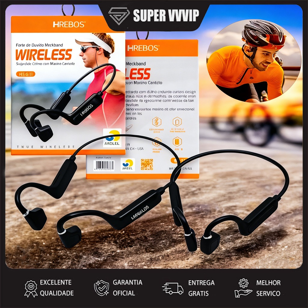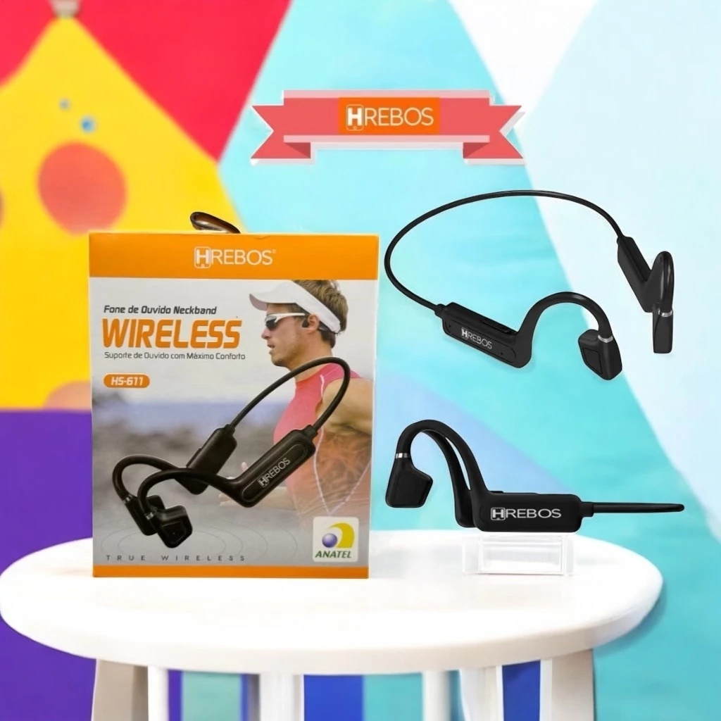 【Estoque pronto p envio 】 Fone de Ouvido Condução Óssea Cor Preto Neckband Bluetooth Earflex Sem Fio Esportivo HS-611