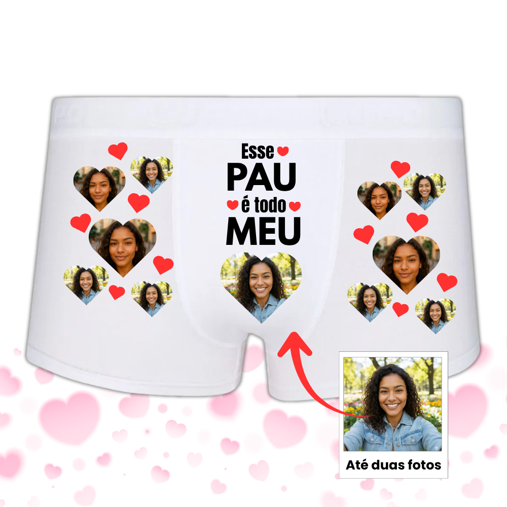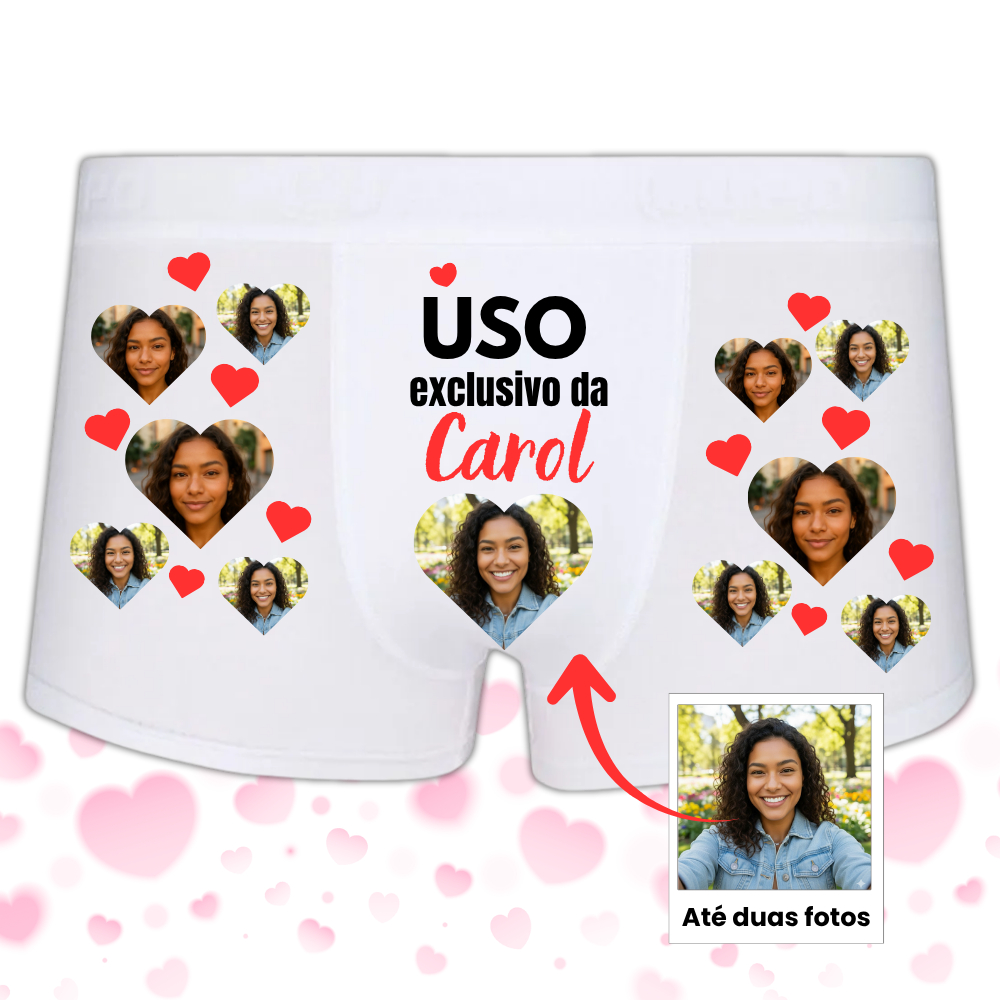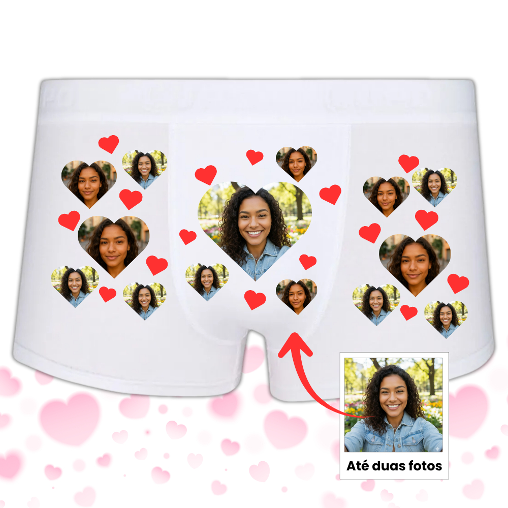 Cueca Personalizada com Foto Namorada Coração Presente Criativo Boxer - P, M, G, GG