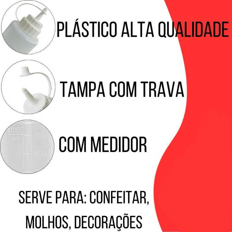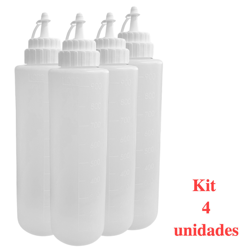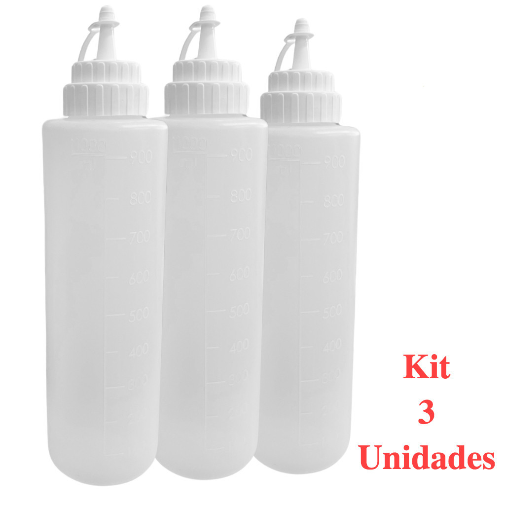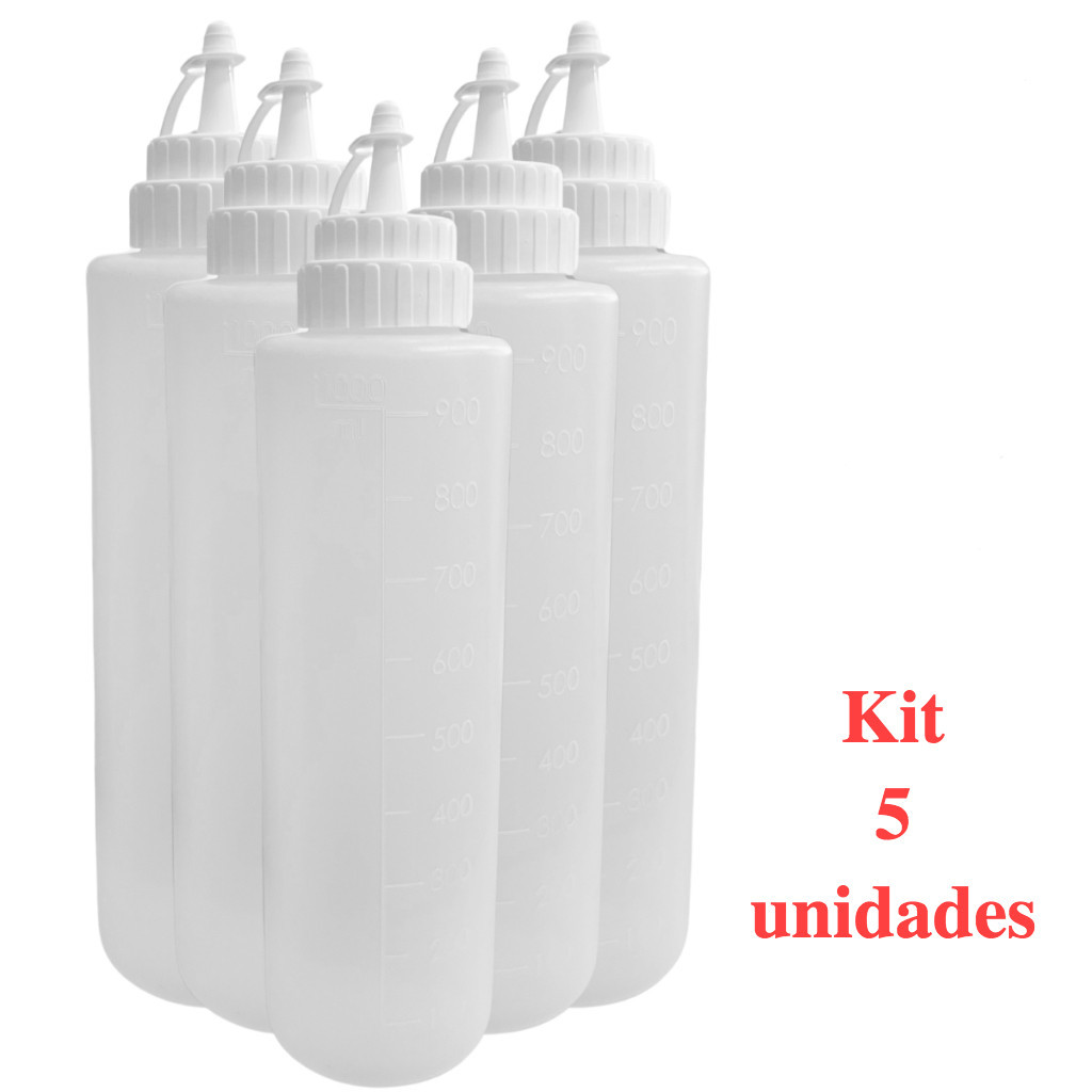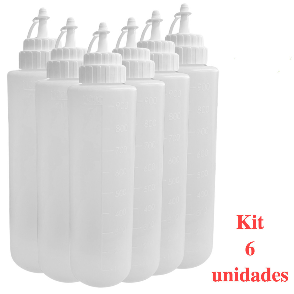 Kit Bisnagas Com 1,2,3,4,5 ou 6 Unidades Profissional 1 Litro Confeiteiro Molhos Crepe Panquecas Donuts