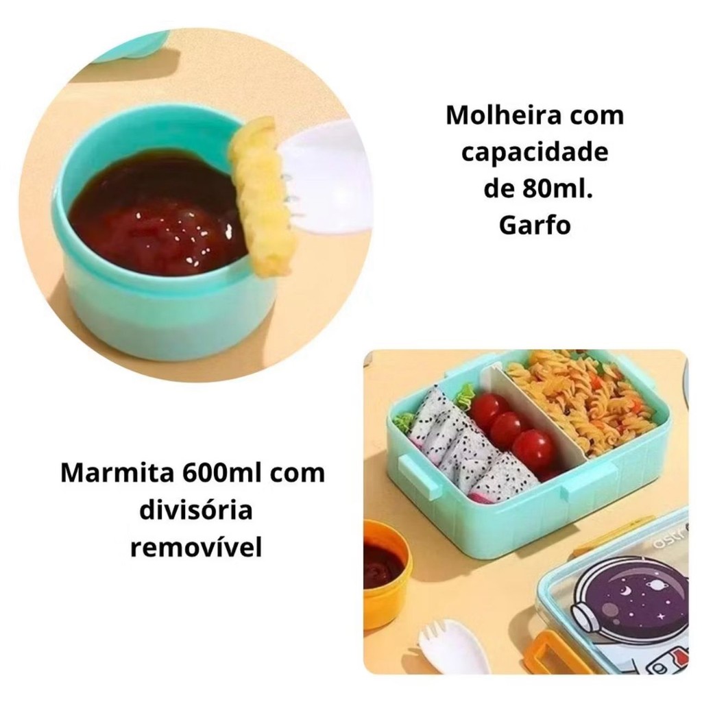 Marmita Lancheira Bentô Com Molheira E Garfo 600ml Infantil