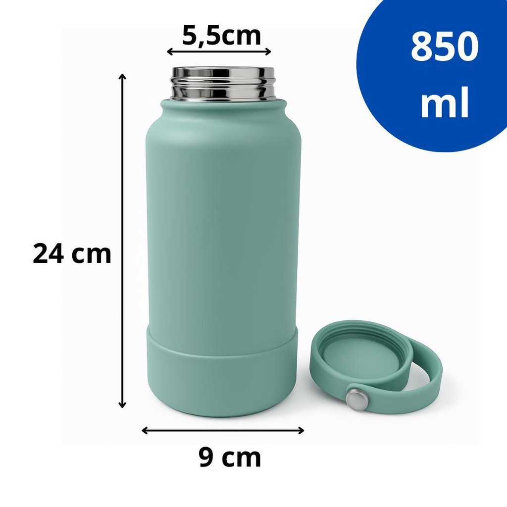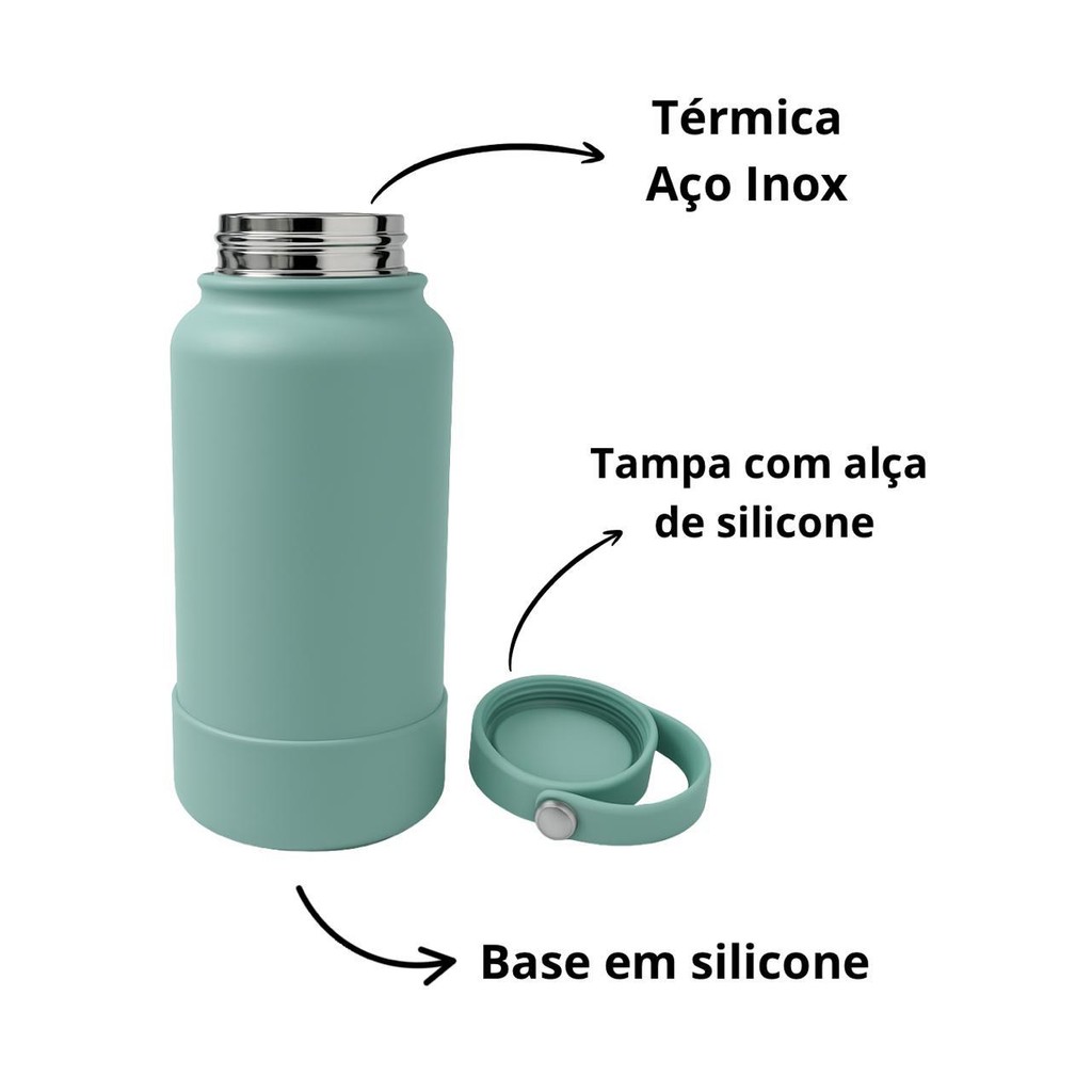 Garrafa Térmica Lisa Aço Inox Base Silicone Água Café Quente Frio Portátil Parede Dupla