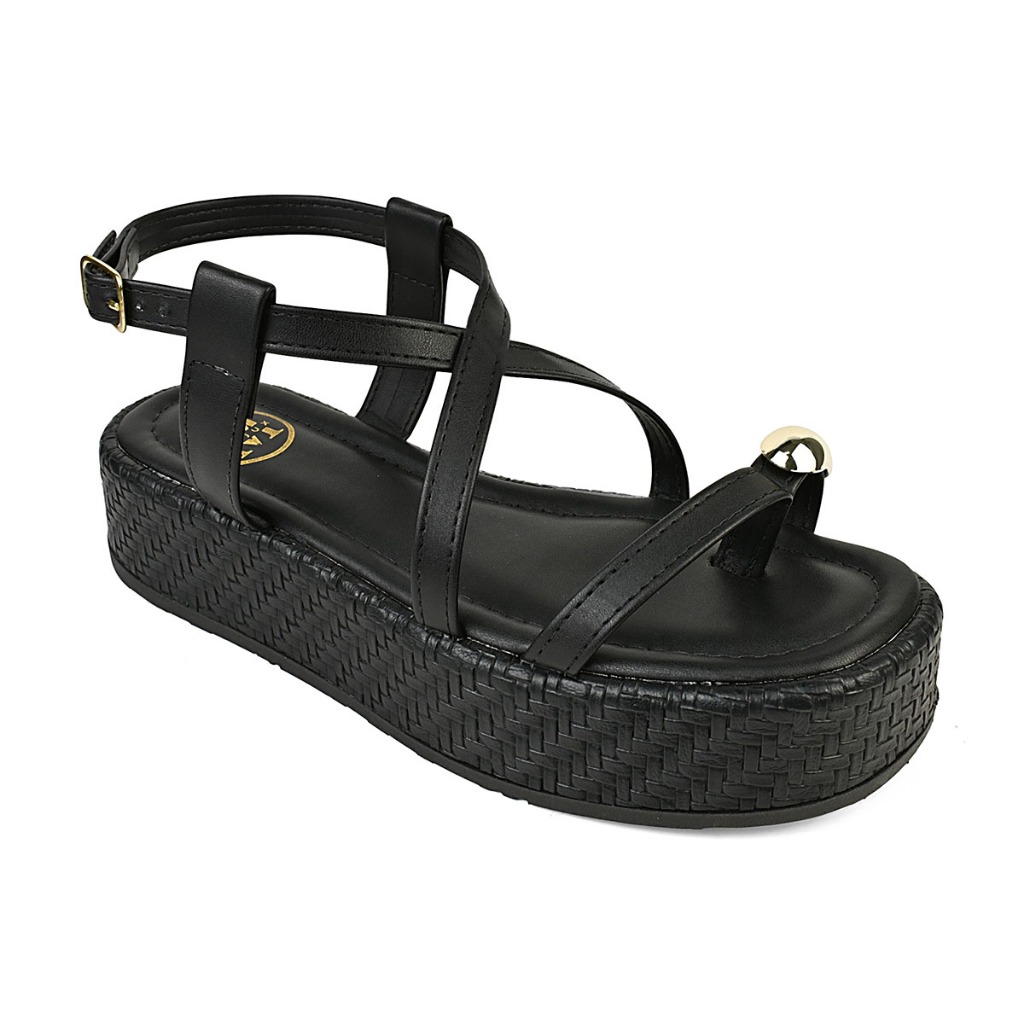 Sandália Flat Feminina Plataforma Majux Confortável com Aplicação Metálica
