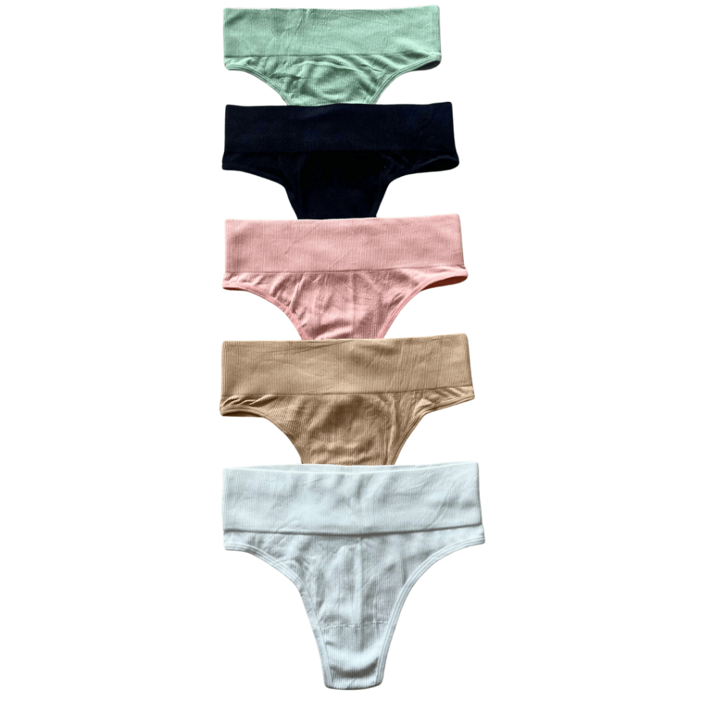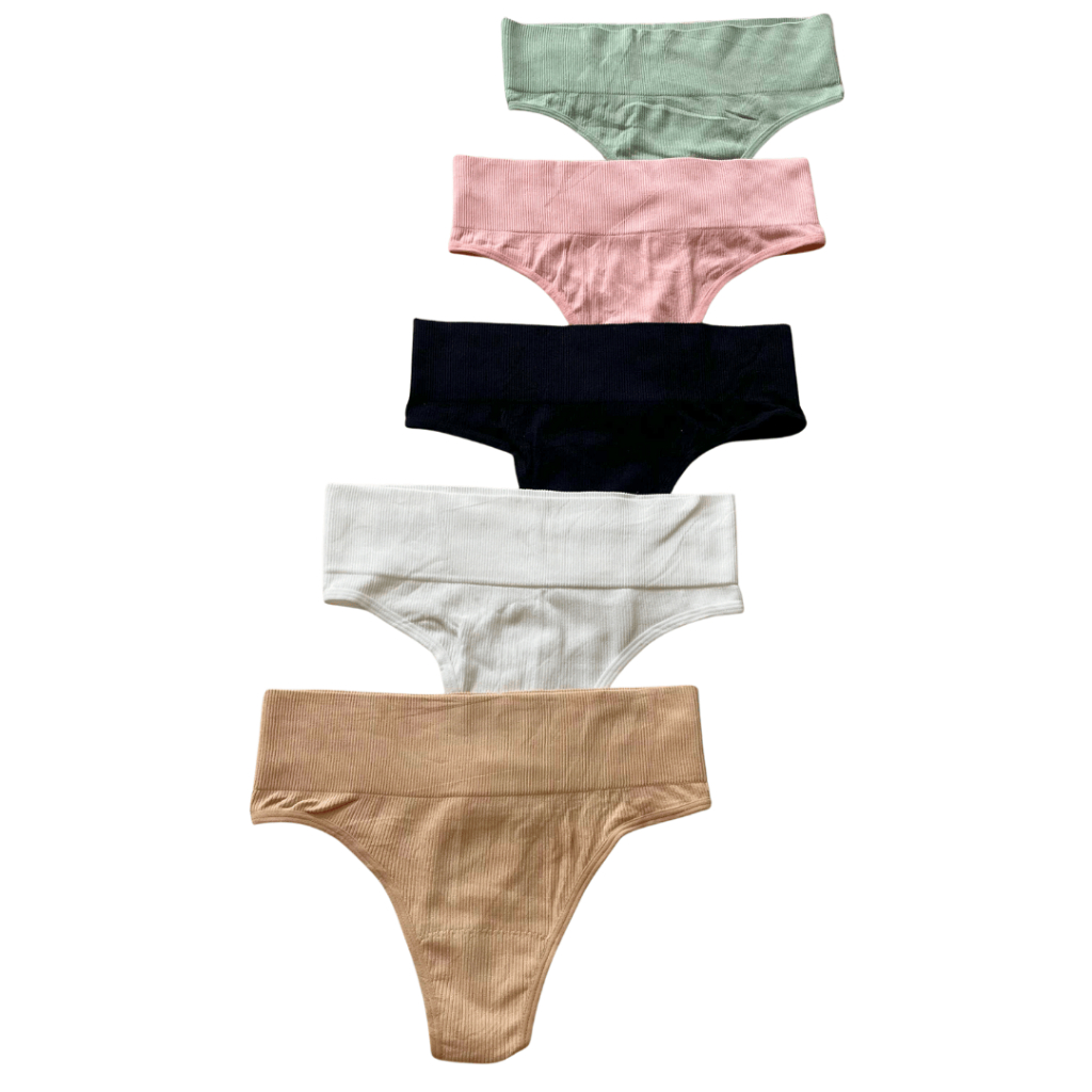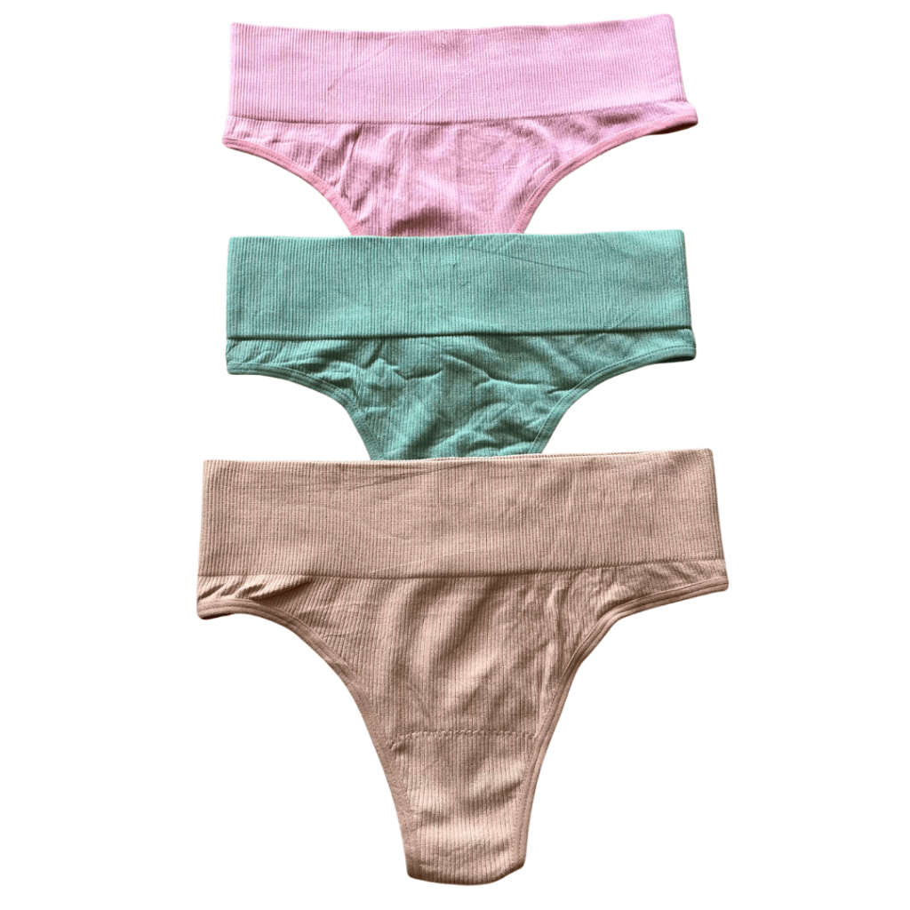 Kit Calcinha Cos Alto 7cm Fio Canelada Tanga Fio Dental Conforto Aperta Barriga